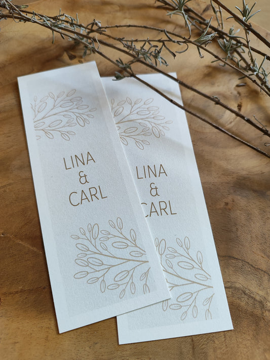 Lesezeichen Verbundenheit - mit zwei Namen & weißem Rand