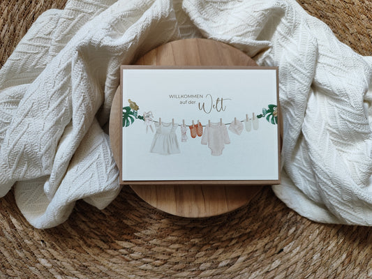 Klappkarte 140x140 Willkommen auf der Welt mit weißem Rand