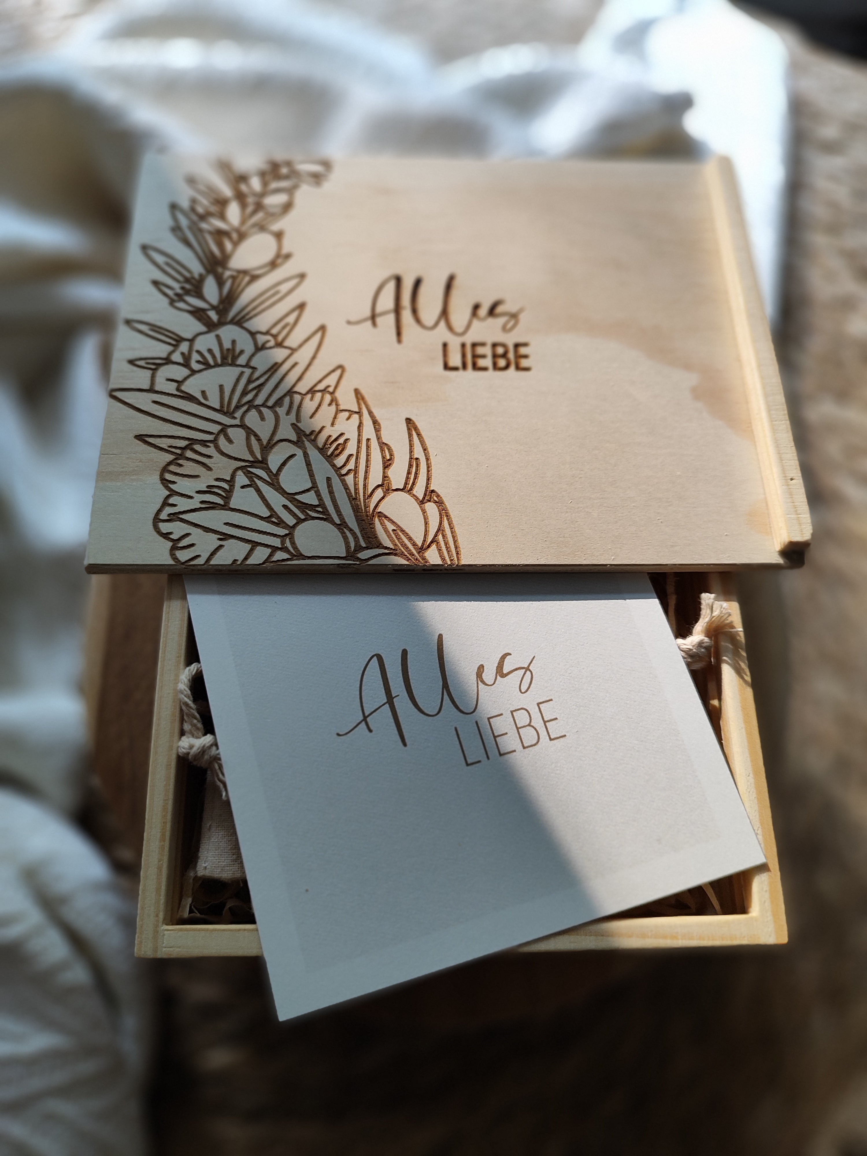 Entdecke wie du mit ein paar Handgriffen einen Blumenkranz binden und damit deine Geschenkbox passend dekorieren kannst.