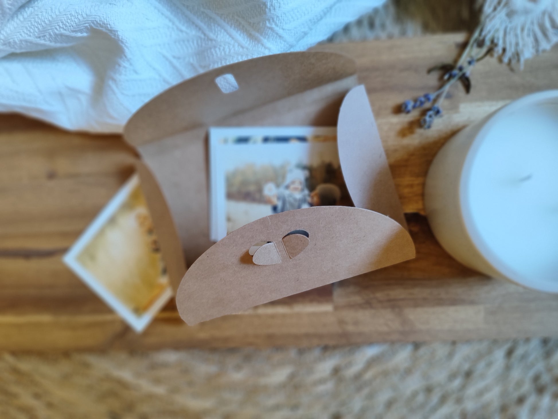 - Stabile Hülle aus Kraftkarton mit charmanten Herzchen-Verschluss