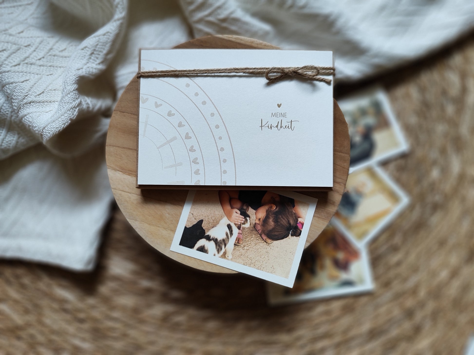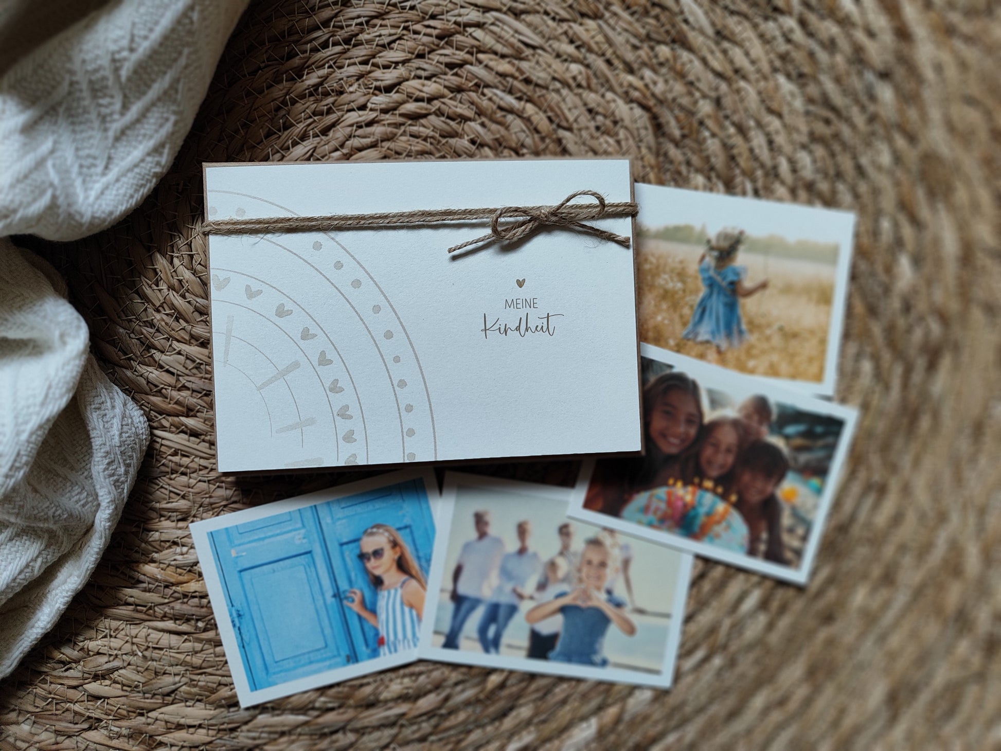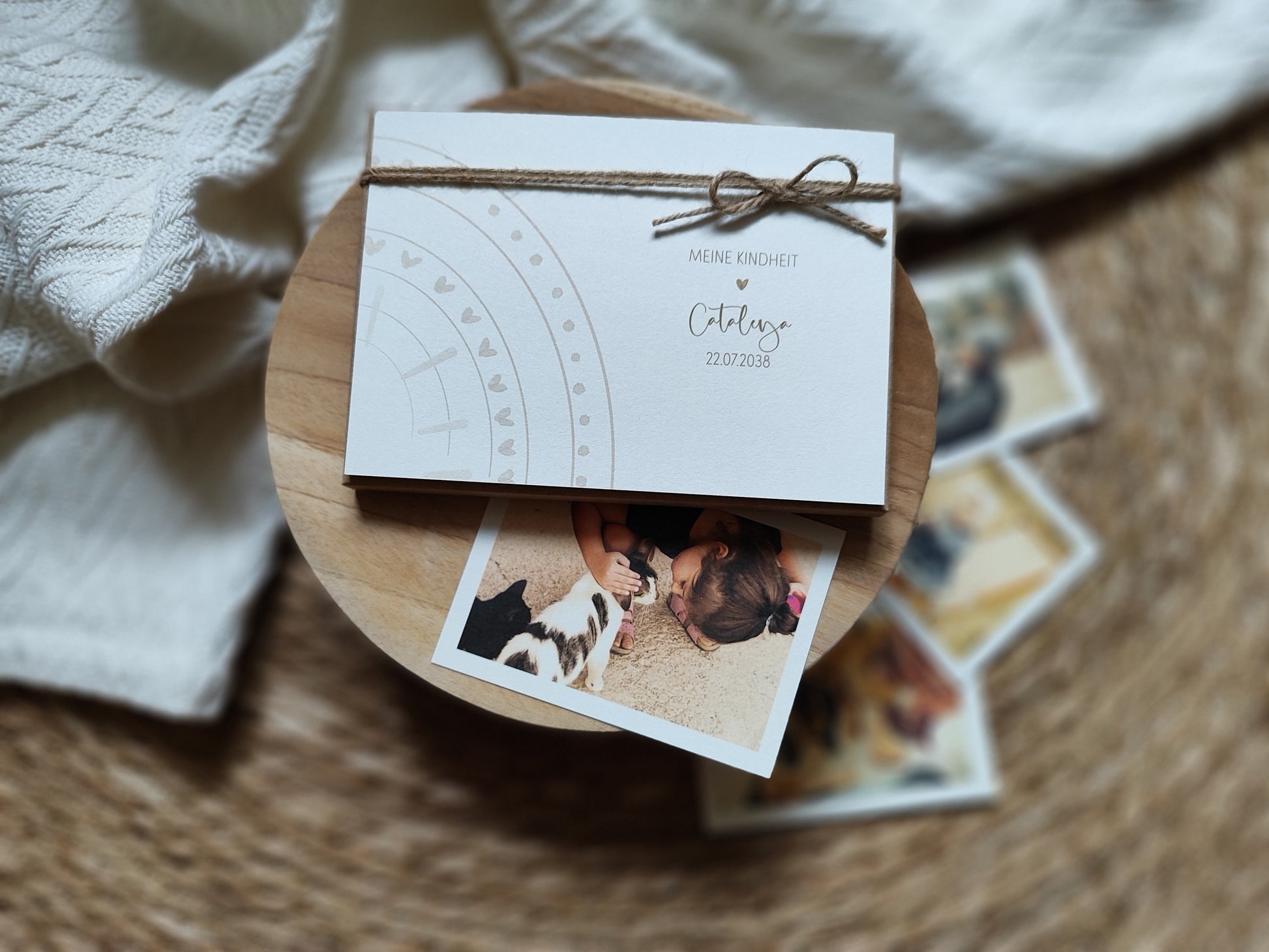 Fest angebracht auf einem stabilen Umschlag aus Kraftkarton, bietet die Fototasche Platz für die Highlights des Kindes im Fotoformat 10,5 x 14,8cm. So bleiben die schönsten Momente stilvoll aufbewahrt und können immer wieder in Erinnerung gerufen werden.
