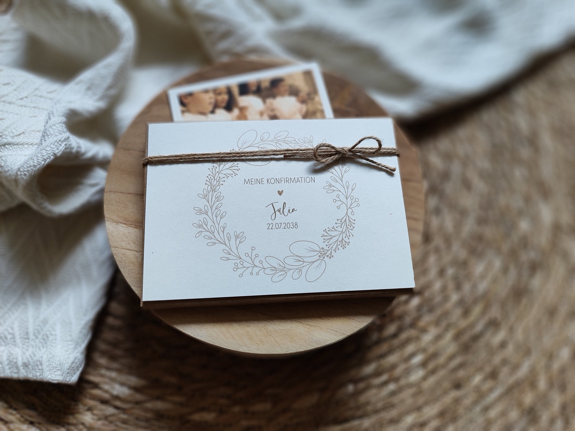Fest angebracht auf einem stabilen Umschlag aus Kraftkarton, bietet die Fototasche Platz für die Highlights der Feier im Fotoformat 10,5 x 14,8cm. So bleiben die schönsten Momente stilvoll aufbewahrt und können immer wieder in Erinnerung gerufen werden.