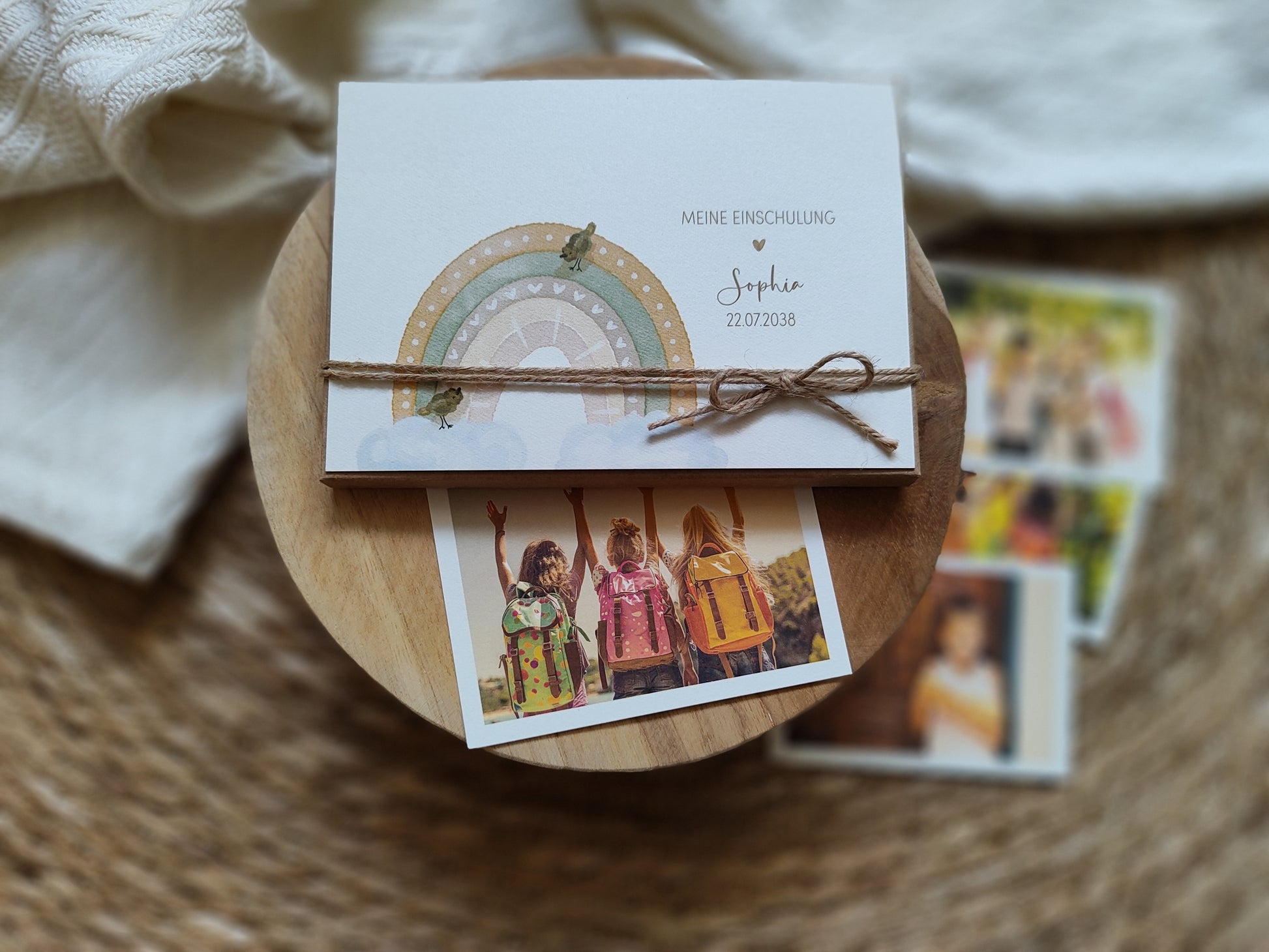 Fototasche "Regenbogen beige" - Liebevolles Geschenk zur Einschulung für das Schulkind