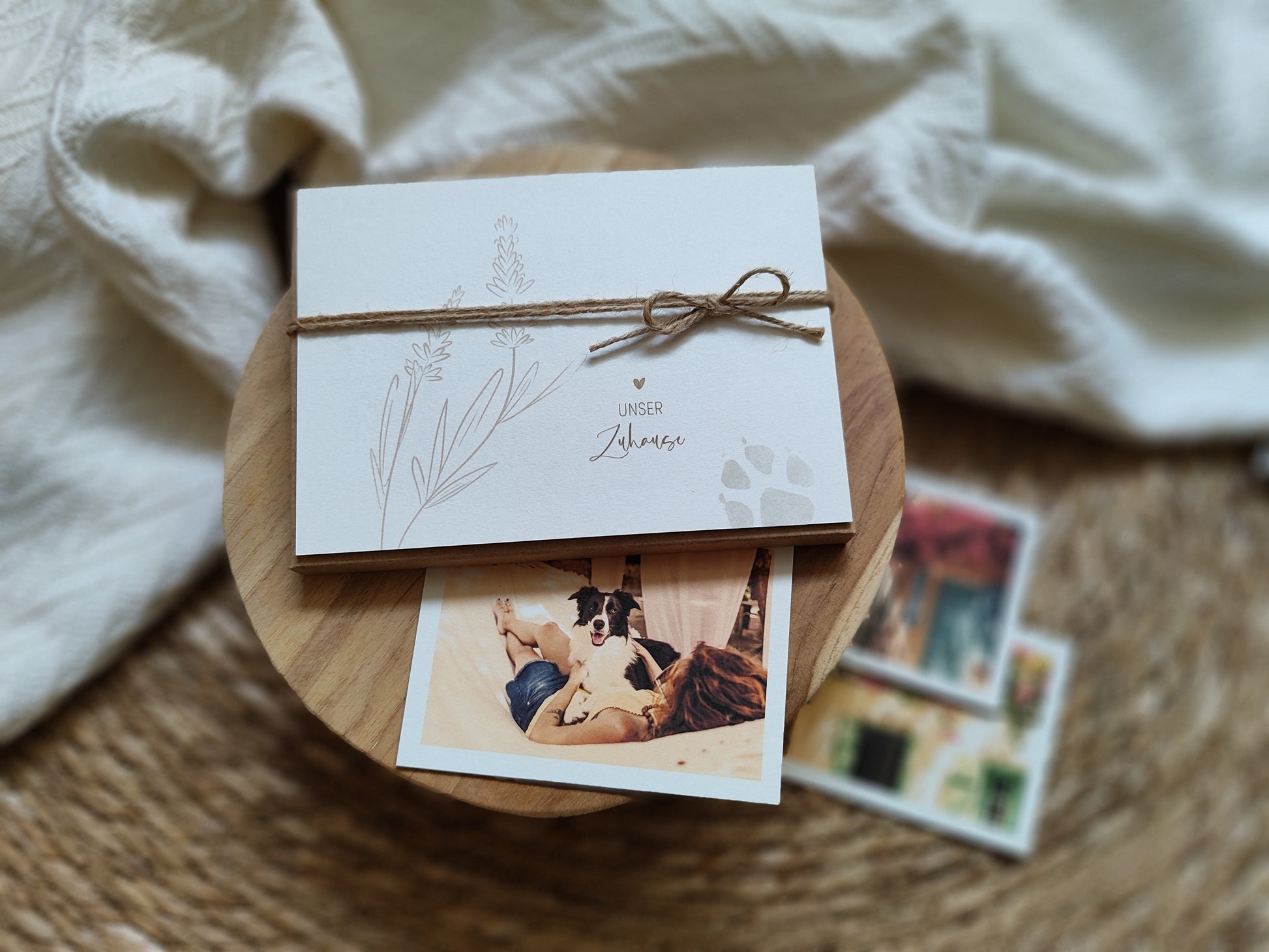 Fest angebracht auf einem stabilen Umschlag aus Kraftkarton, bietet die Fototasche Platz für die neue Lebenssituation im Fotoformat 10,5 x 14,8cm. So bleiben die schönsten Momente stilvoll aufbewahrt und können immer wieder in Erinnerung gerufen werden.