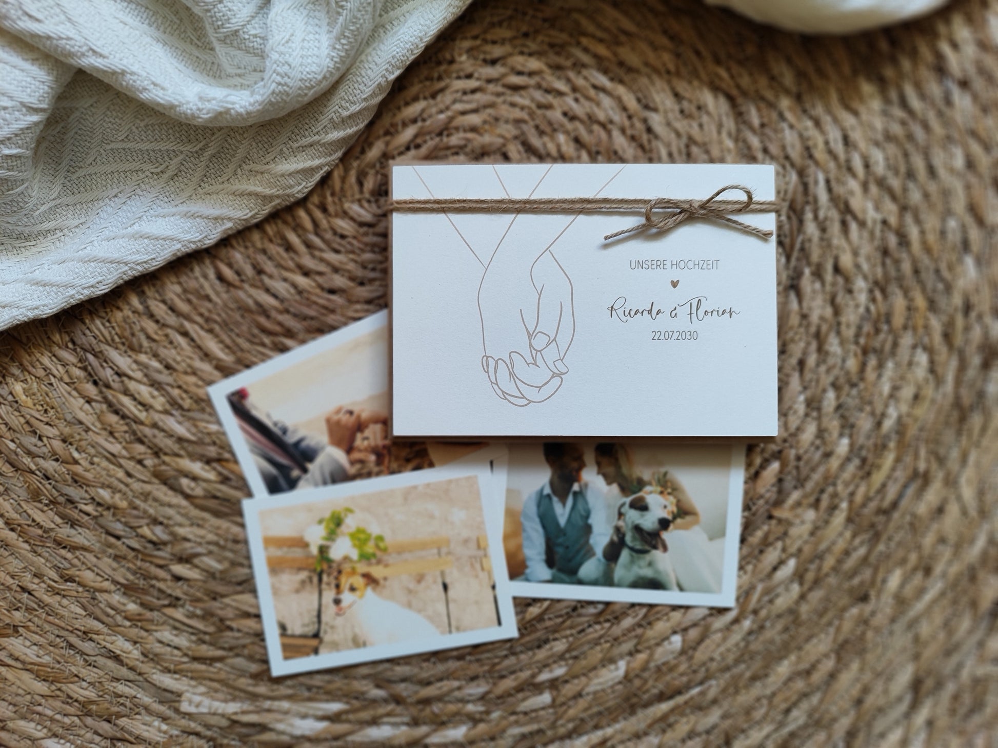 - Eigens entworfene, romantische Illustration der ineinander verschlungenen Hände
