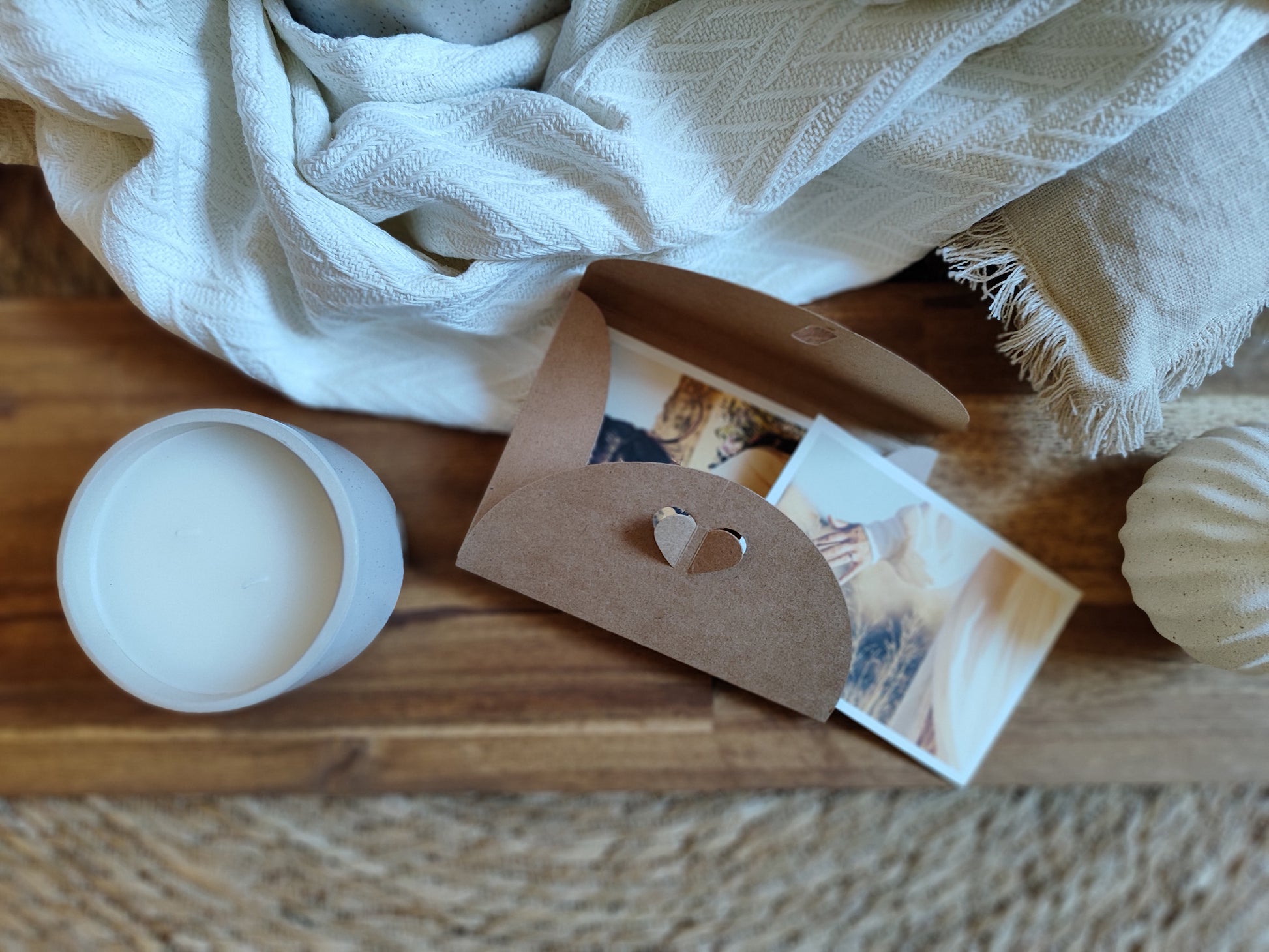 - Stabile Hülle aus Kraftkarton mit charmanten Herzchen-Verschluss