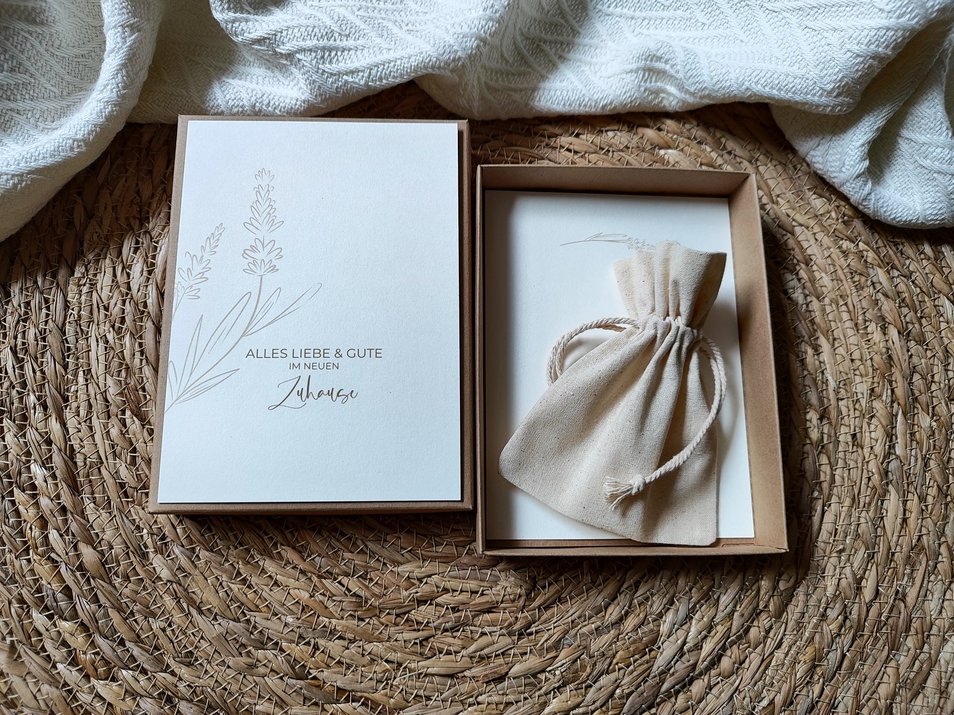 Mit der kleinen Geschenkbox (ca. Postkartengröße) kannst du Geld oder kleine Wertschätze zum Einzug schick verpackt verschenken.
