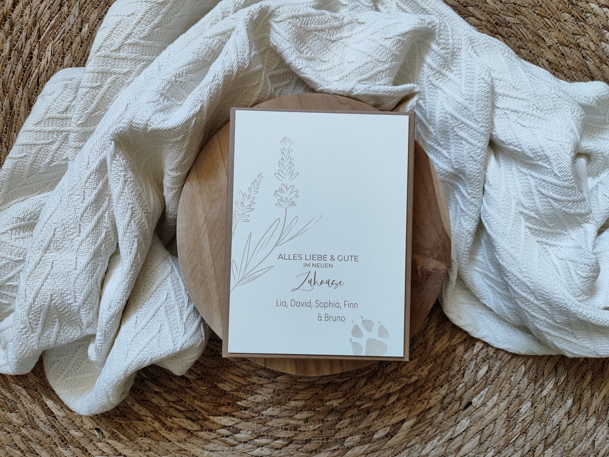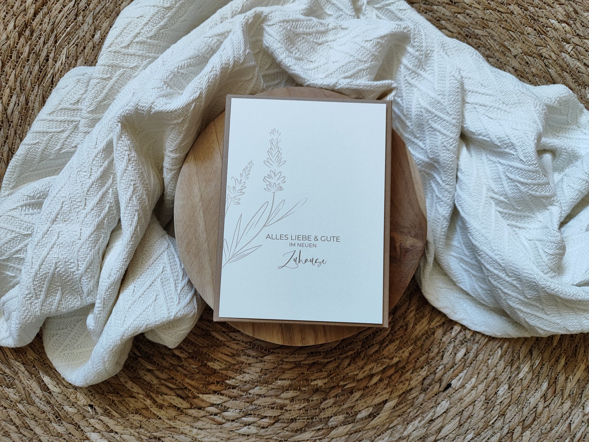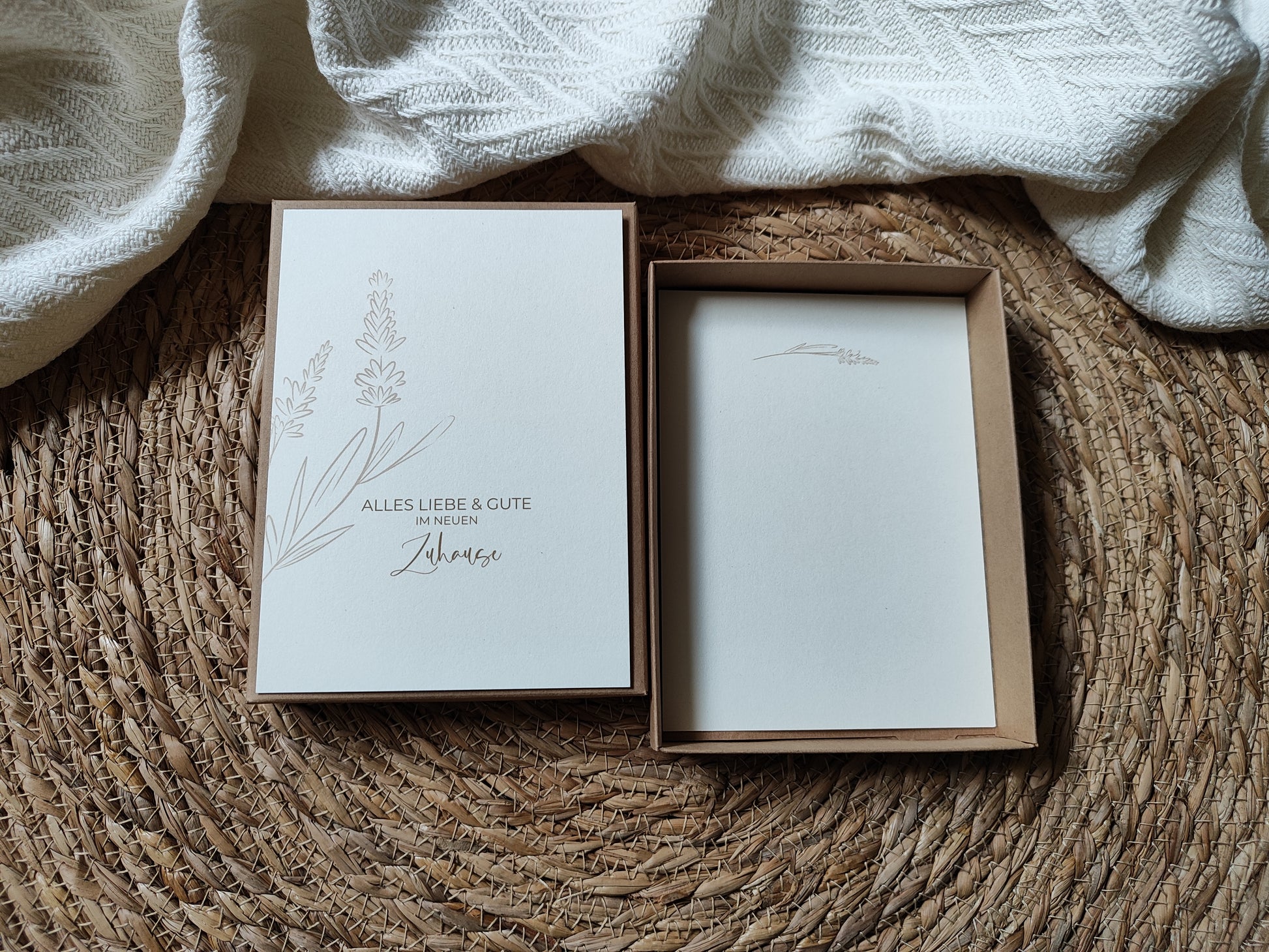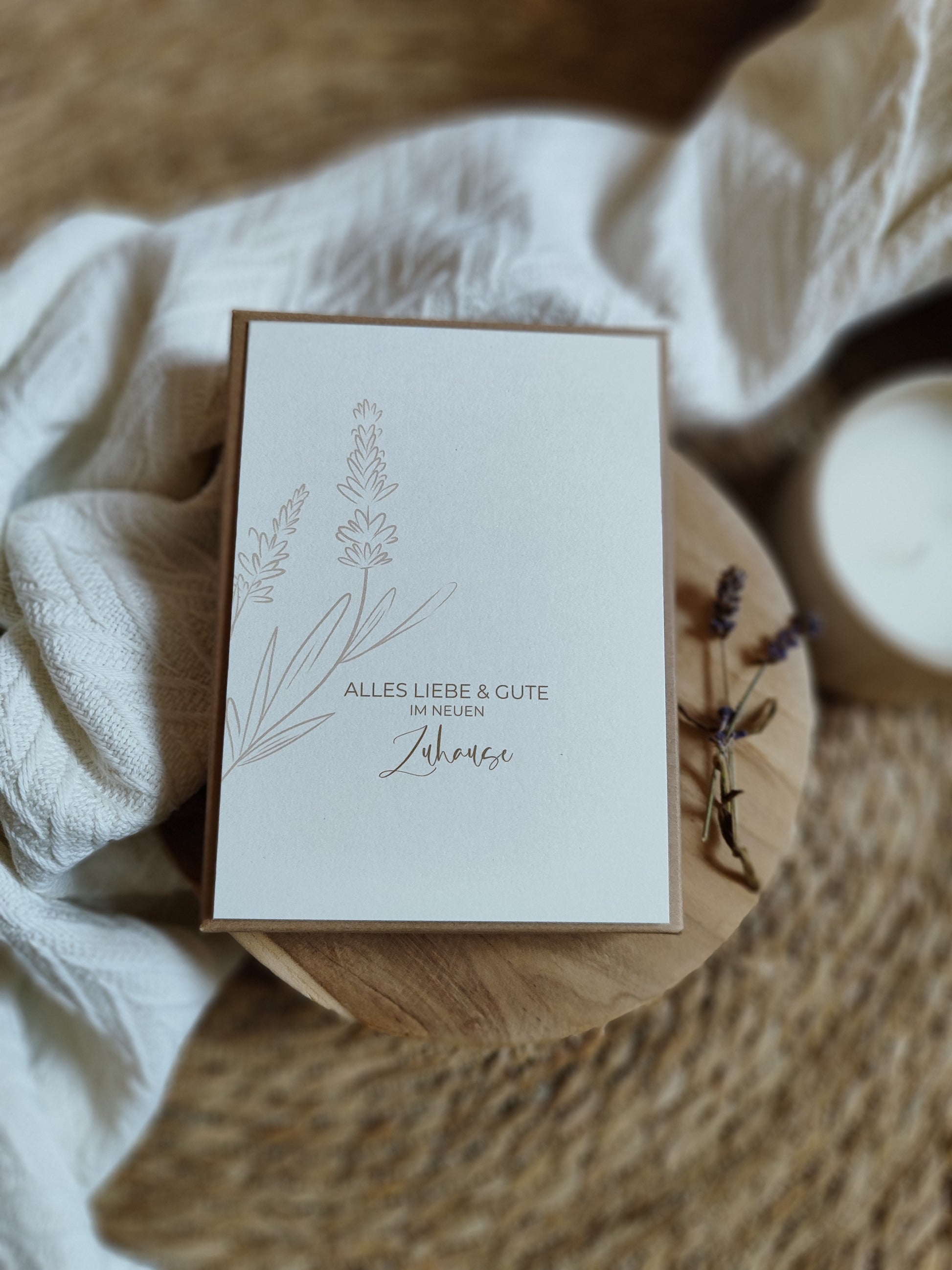 Mit der kleinen Geschenkverpackung Lavendel (ca. Postkartengröße) kannst du deine Glückwünsche zum Einzug besonders zum Ausdruck bringen.