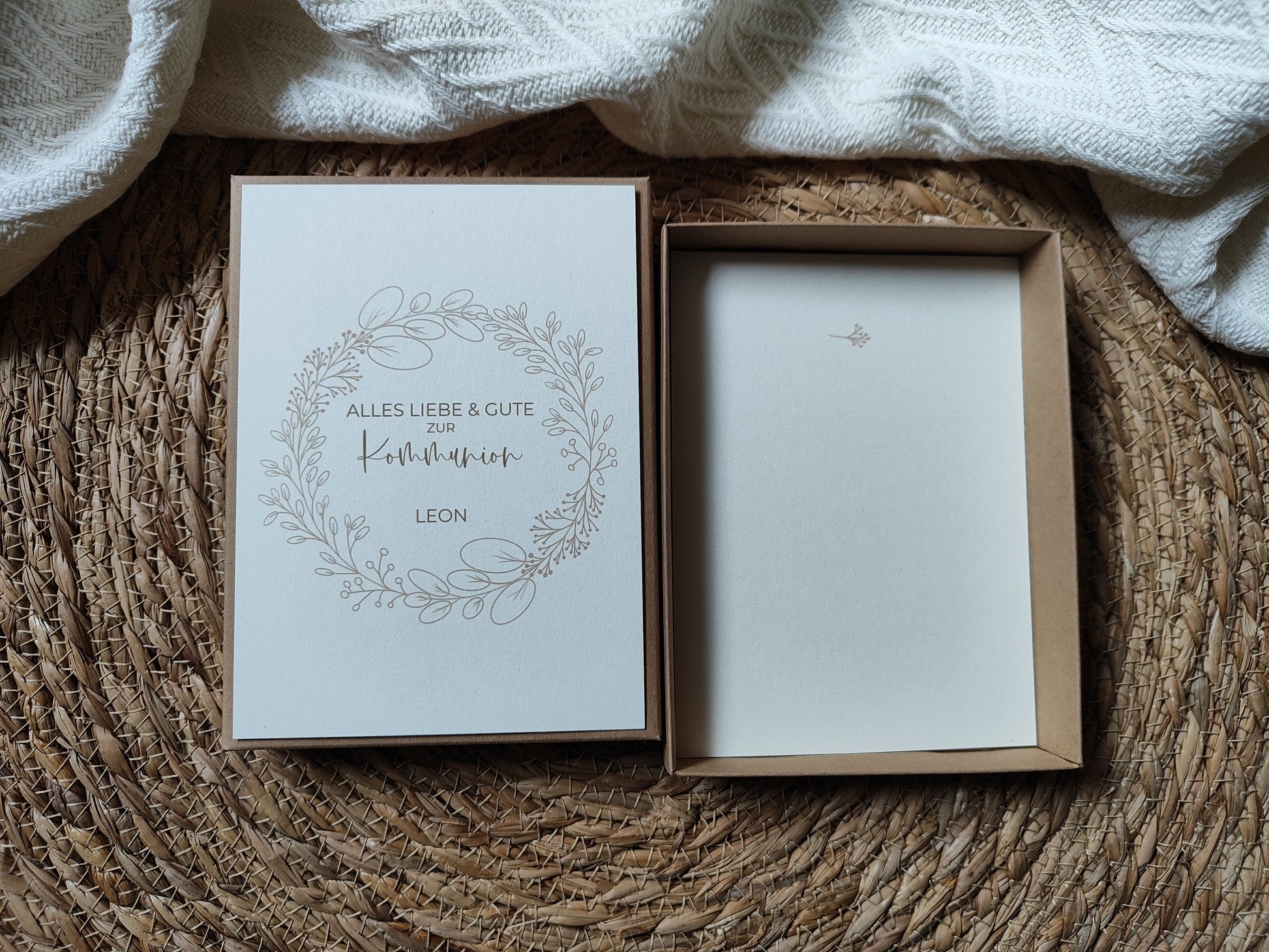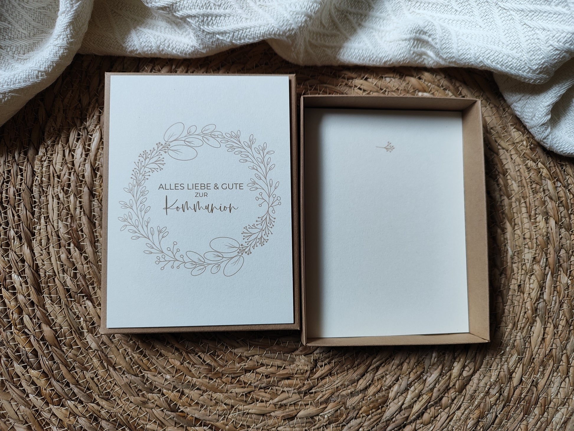 Mit der kleinen Geschenkbox (ca. Postkartengröße) kannst du deine Glückwünsche zur Kommunion besonders zum Ausdruck bringen.