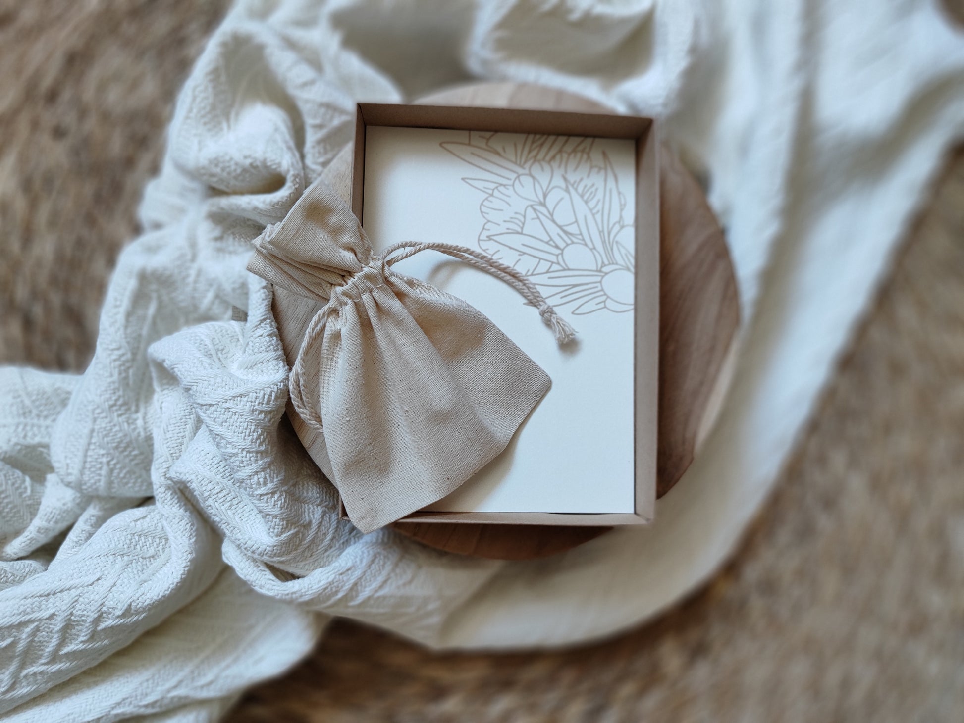 - 1x Baumwollsäckchen mit Zugband, 9,0 x 12,0cm, natur