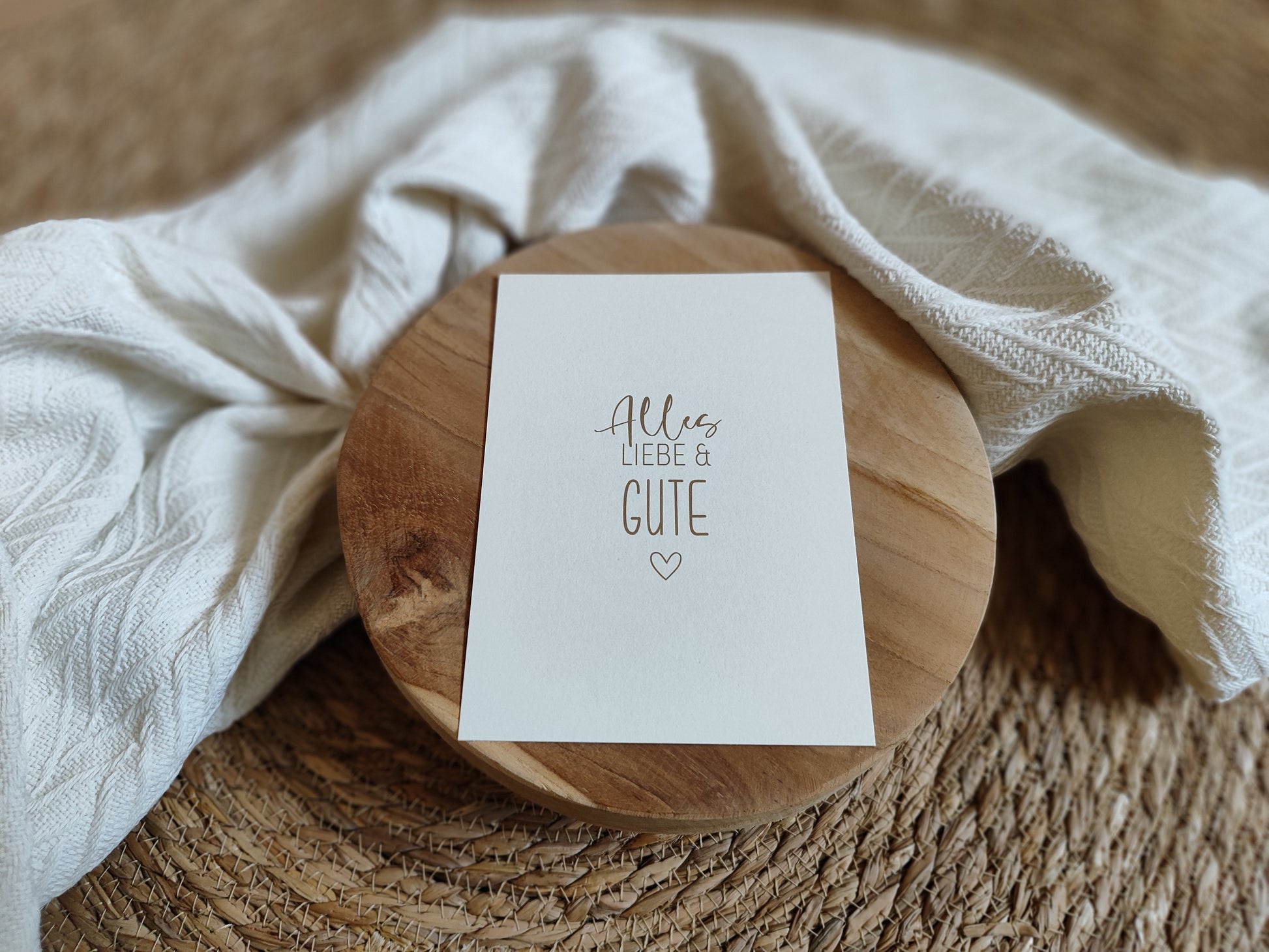 Jede unserer Illustrationen entsteht mit viel Liebe zum Detail und wird exklusiv für dich auf edlem Strukturpapier gedruckt. Die zarte Haptik des Papiers und der warme Cremeton heben die Motive besonders hervor – jede Karte wirkt dadurch lebendiger und wird zum echten Blickfang. Die Kombination aus Farbe und Struktur verleiht jeder Illustration Tiefe und einen individuellen Charakter.