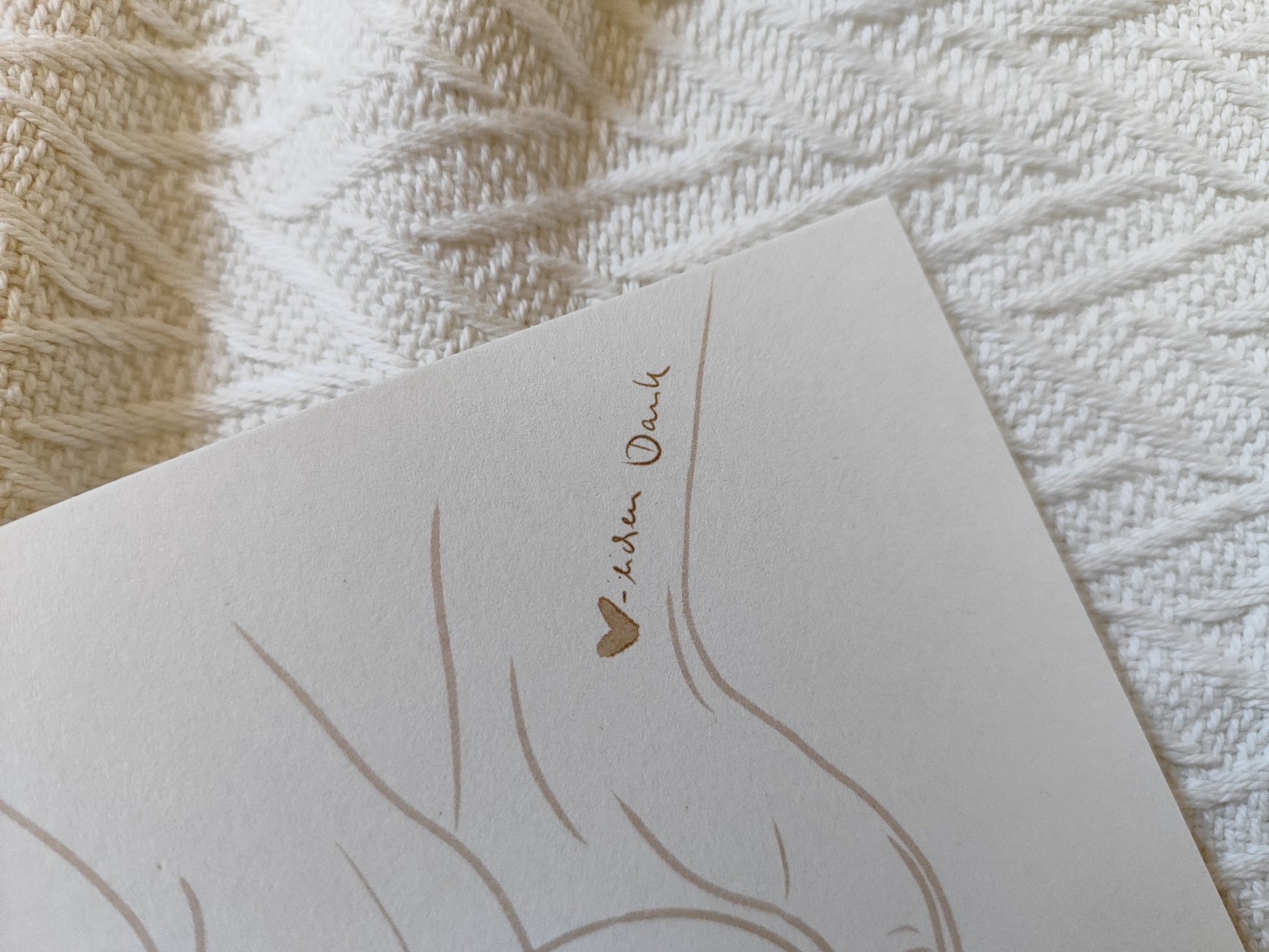 Unsere Illustrationen werden auf einem creme-farbenen Strukturpapier mit leichter und weich anfühlender Haptik für dich gedruckt. Die Kombination aus der leichten natürlichen Struktur und der Farbe creme, verleiht den Illustrationen einen besonderen Look.