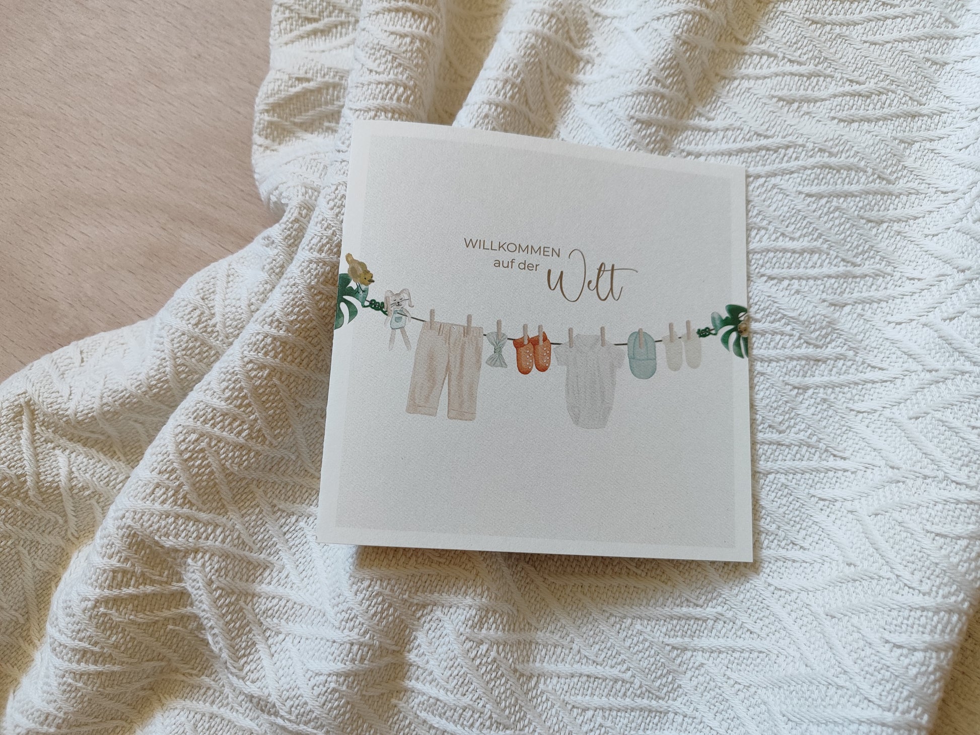 Klappkarte 140x140 Willkommen auf der Welt mit weißem Rand