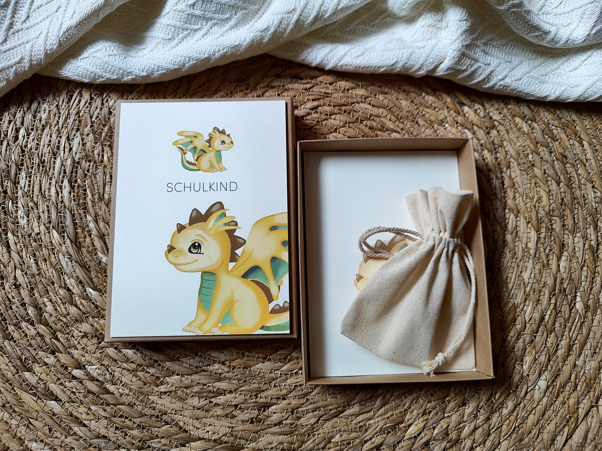 Mit der kleinen Geschenkbox (ca. Postkartengröße) kannst du Geld oder kleine Wertschätze zur Einschulung schick verpackt verschenken.