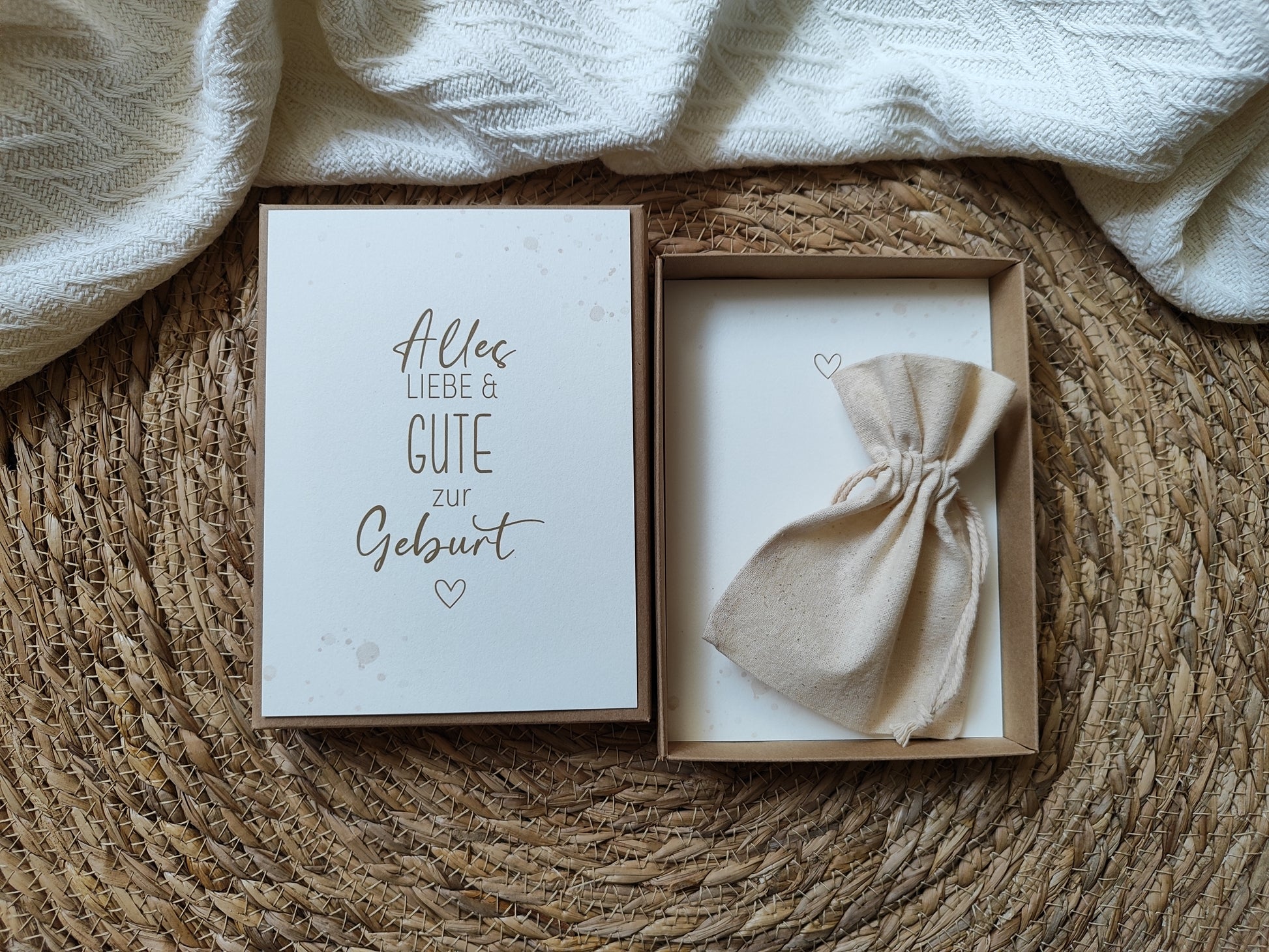 Mit der kleinen Geschenkbox goldig (ca. Postkartengröße) kannst du Geld oder kleine Wertschätze zur Geburt schick verpackt verschenken.