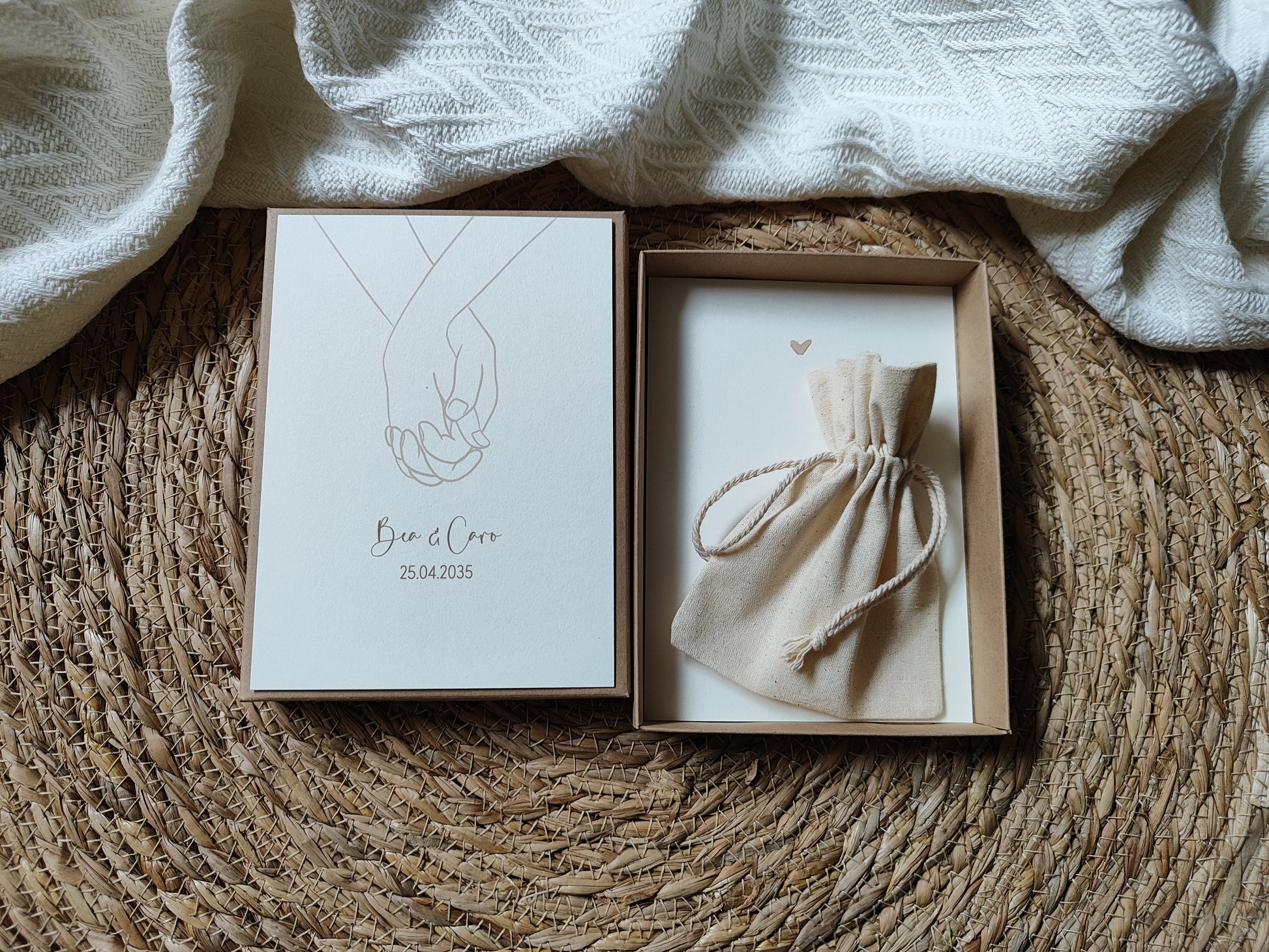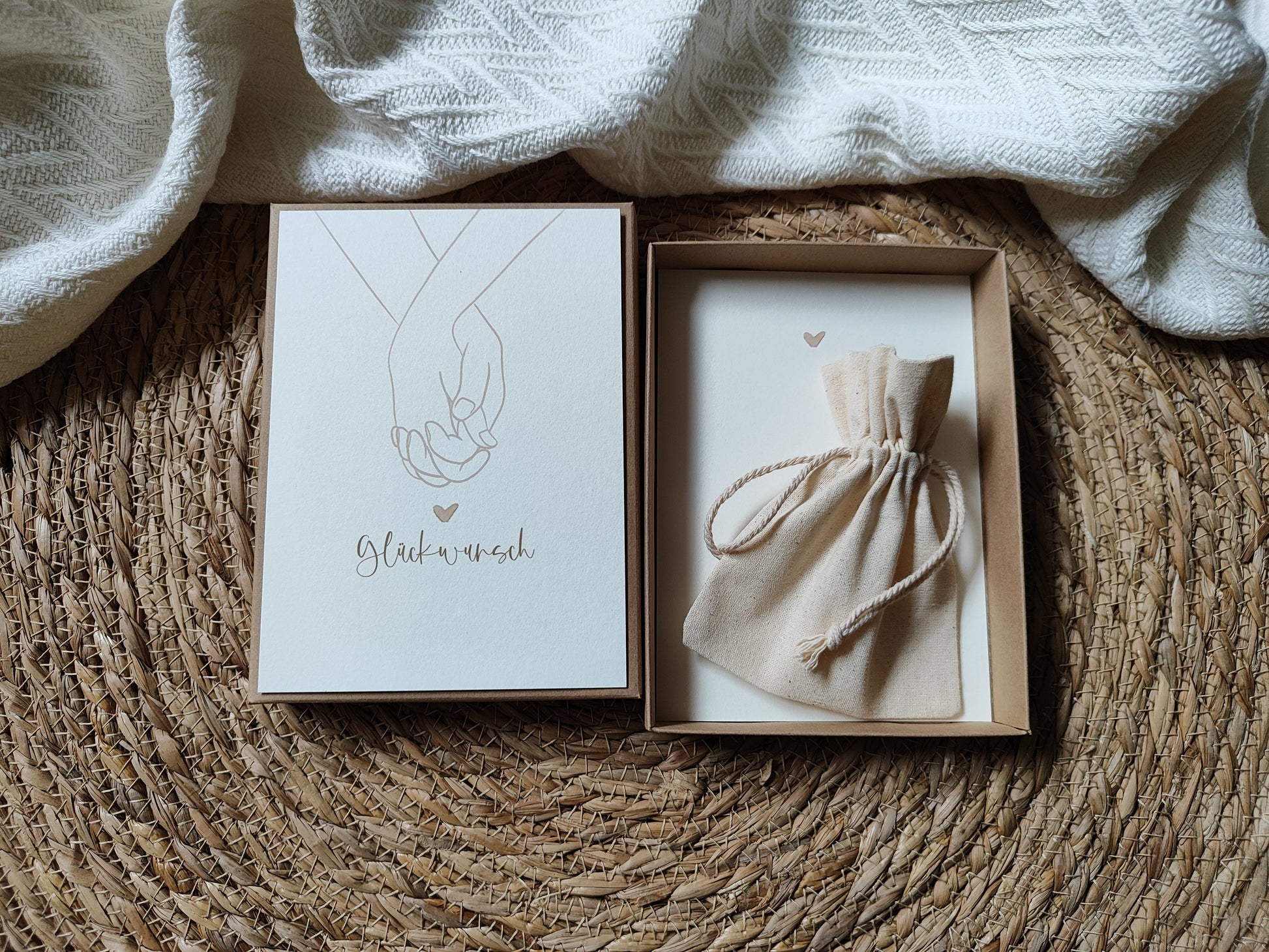 Die Karte in der Box ist herausnehmbar und bietet Platz auf der Vor- und Rückseite für einen eigenen Text.