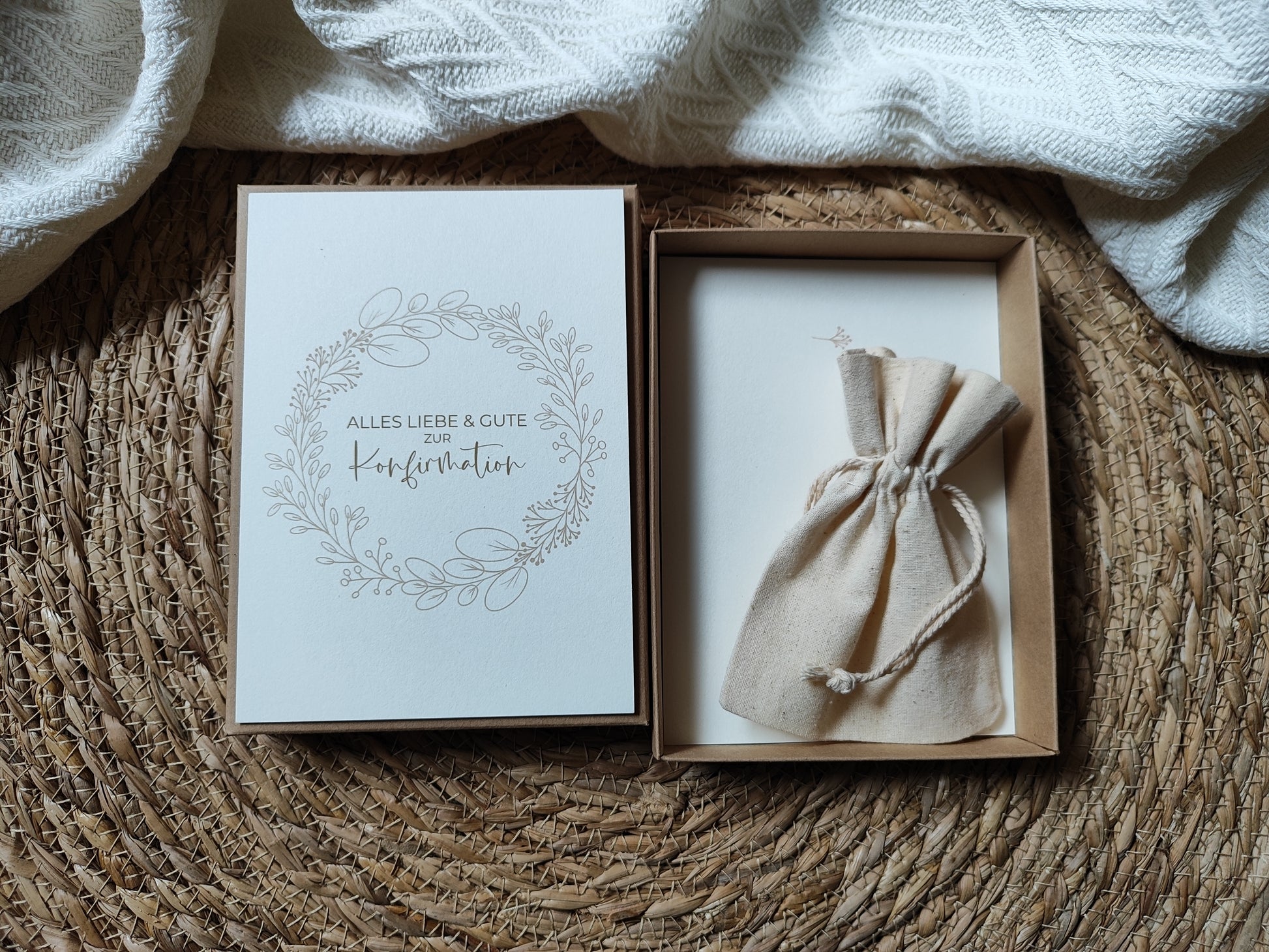 Mit der kleinen Geschenkbox (ca. Postkartengröße) kannst du Geld oder kleine Wertschätze zur Konfirmation schick verpackt verschenken.