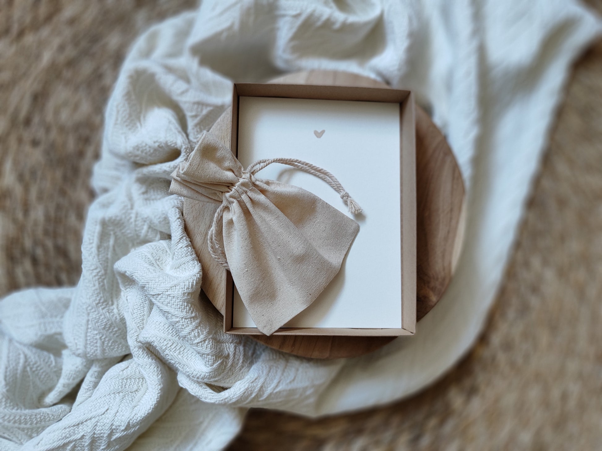 - 1x Baumwollsäckchen mit Zugband, 9,0 x 12,0cm, natur