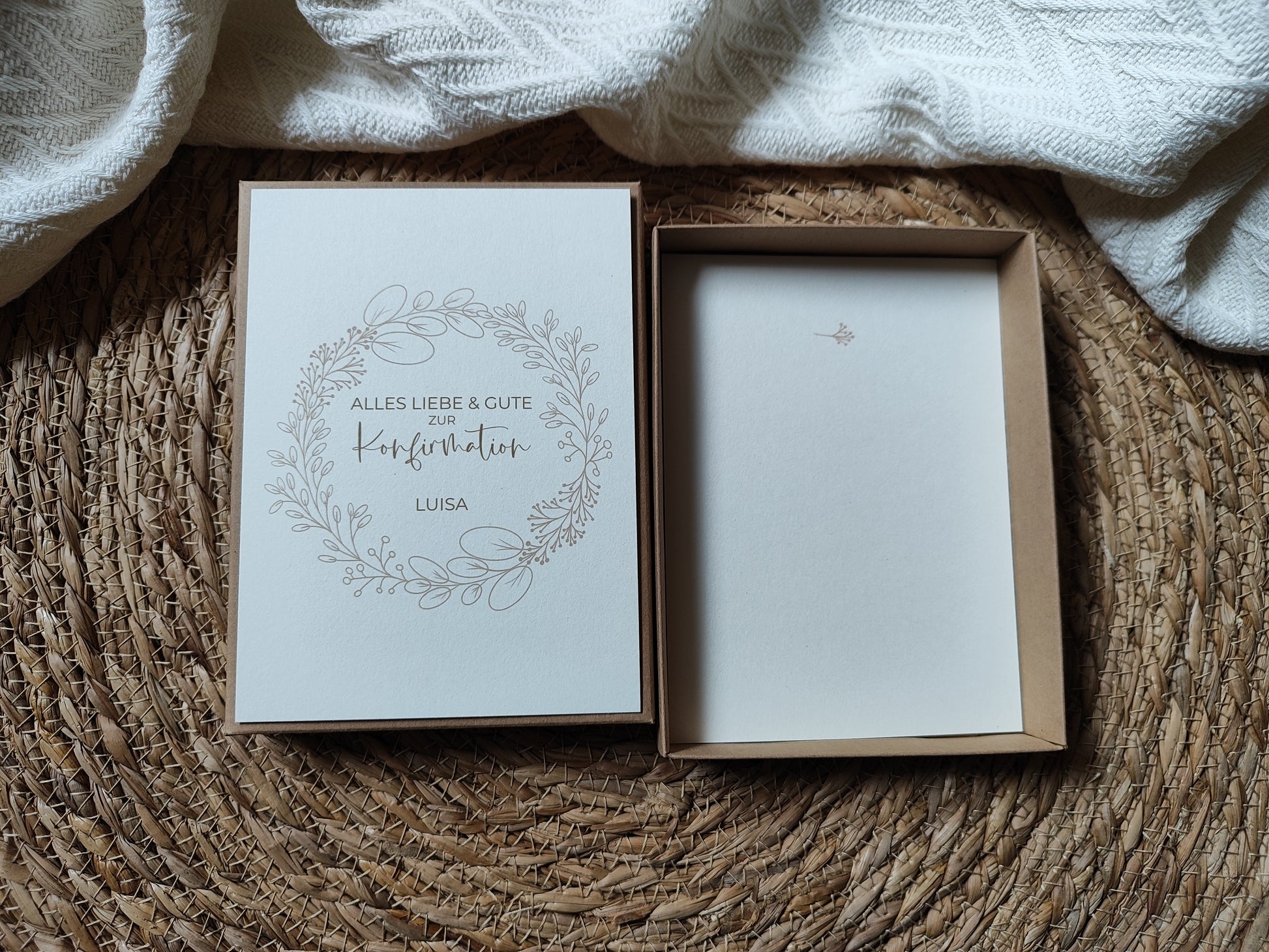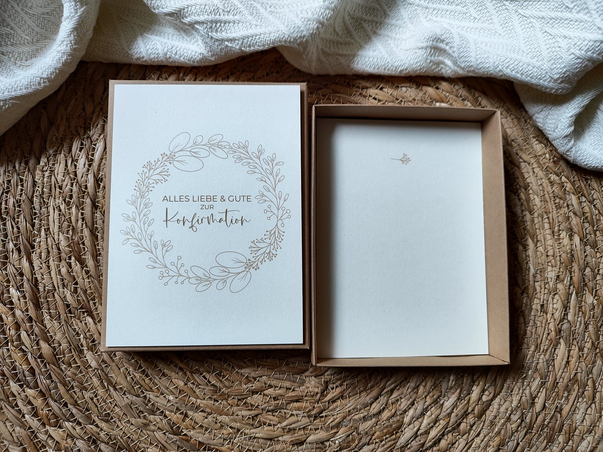 Mit der kleinen Geschenkbox (ca. Postkartengröße) kannst du deine Glückwünsche zur Konfirmation besonders zum Ausdruck bringen.