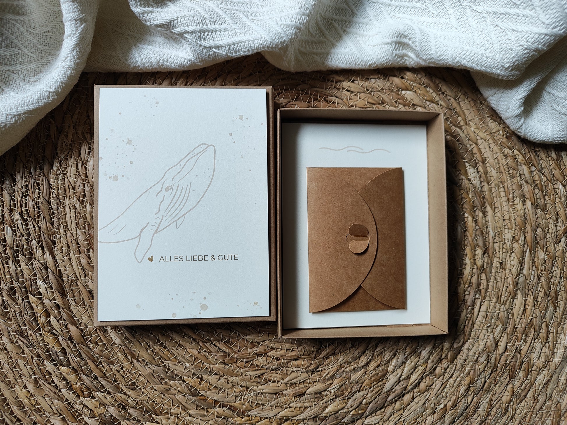 Die Karte in der Box ist herausnehmbar und bietet Platz auf der Vor- und Rückseite für einen eigenen Text.