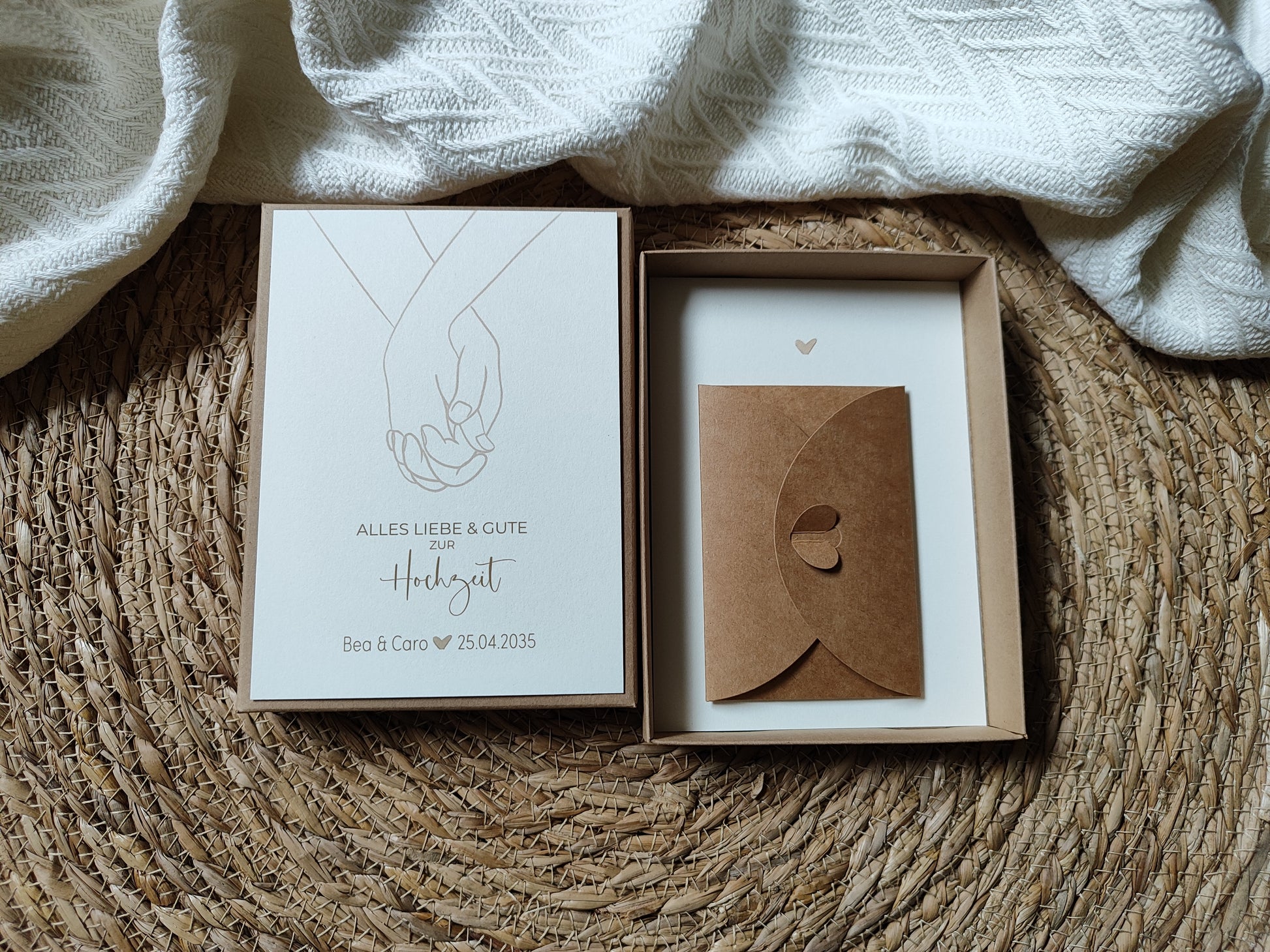 Mit der kleinen Geschenkbox(ca. Postkartengröße) kannst du eine Gutscheinkarte zur Hochzeit verschenken.