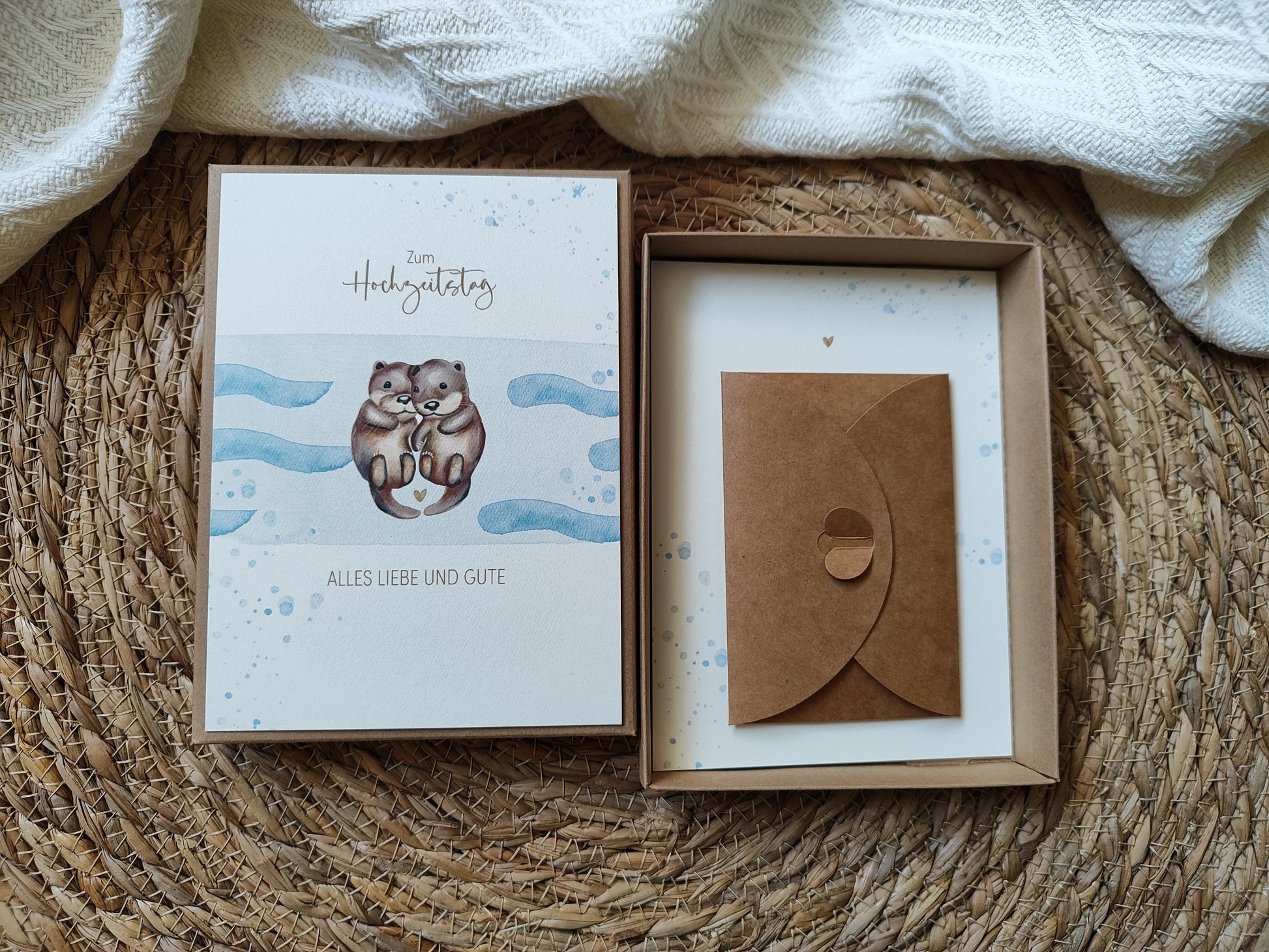 Die Karte in der Box ist herausnehmbar und bietet Platz auf der Vor- und Rückseite für einen eigenen Text.