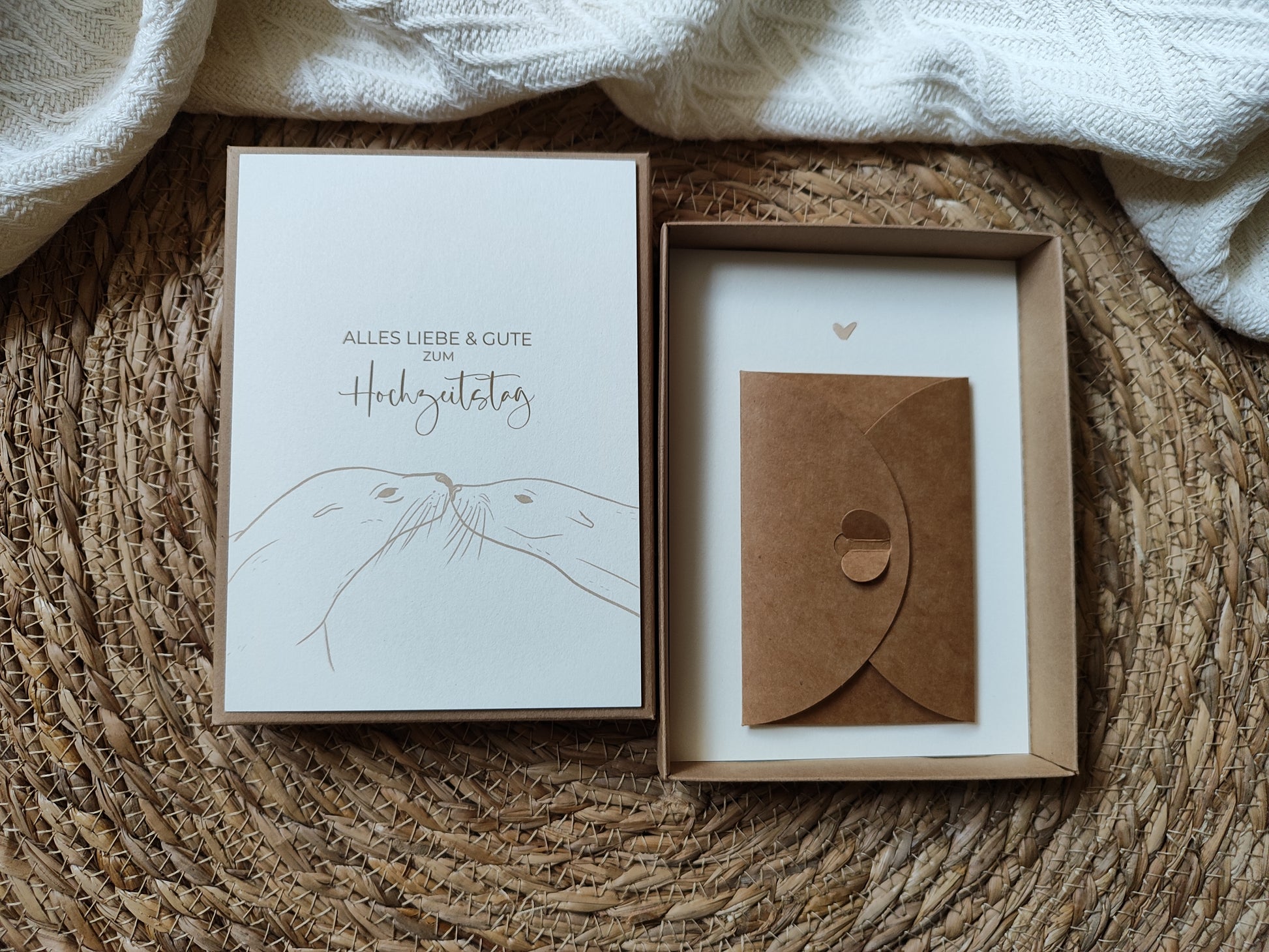 Mit der kleinen Geschenkbox (ca. Postkartengröße) kannst du eine Gutscheinkarte zum Hochzeitstag liebevoll verpackt verschenken.