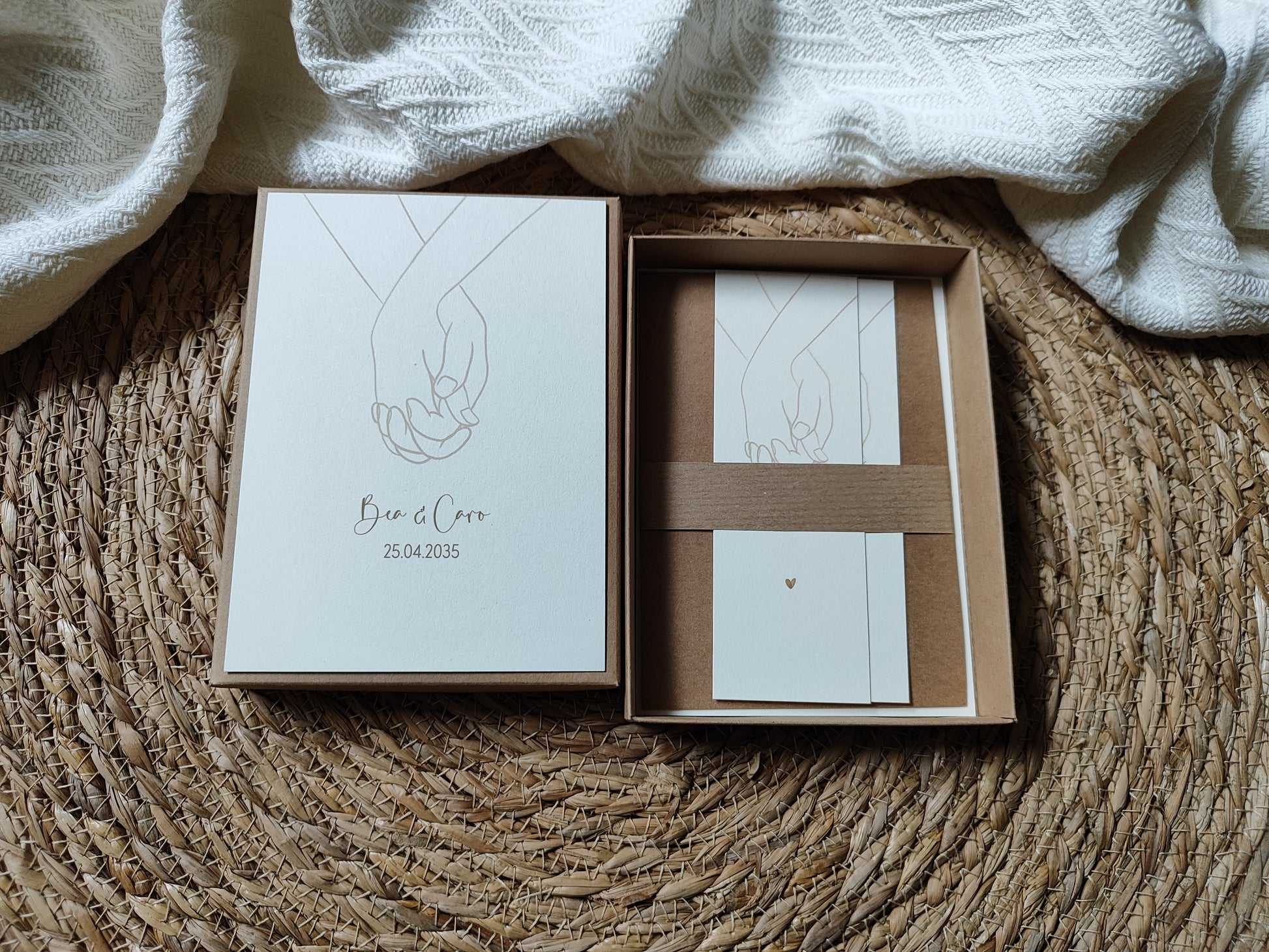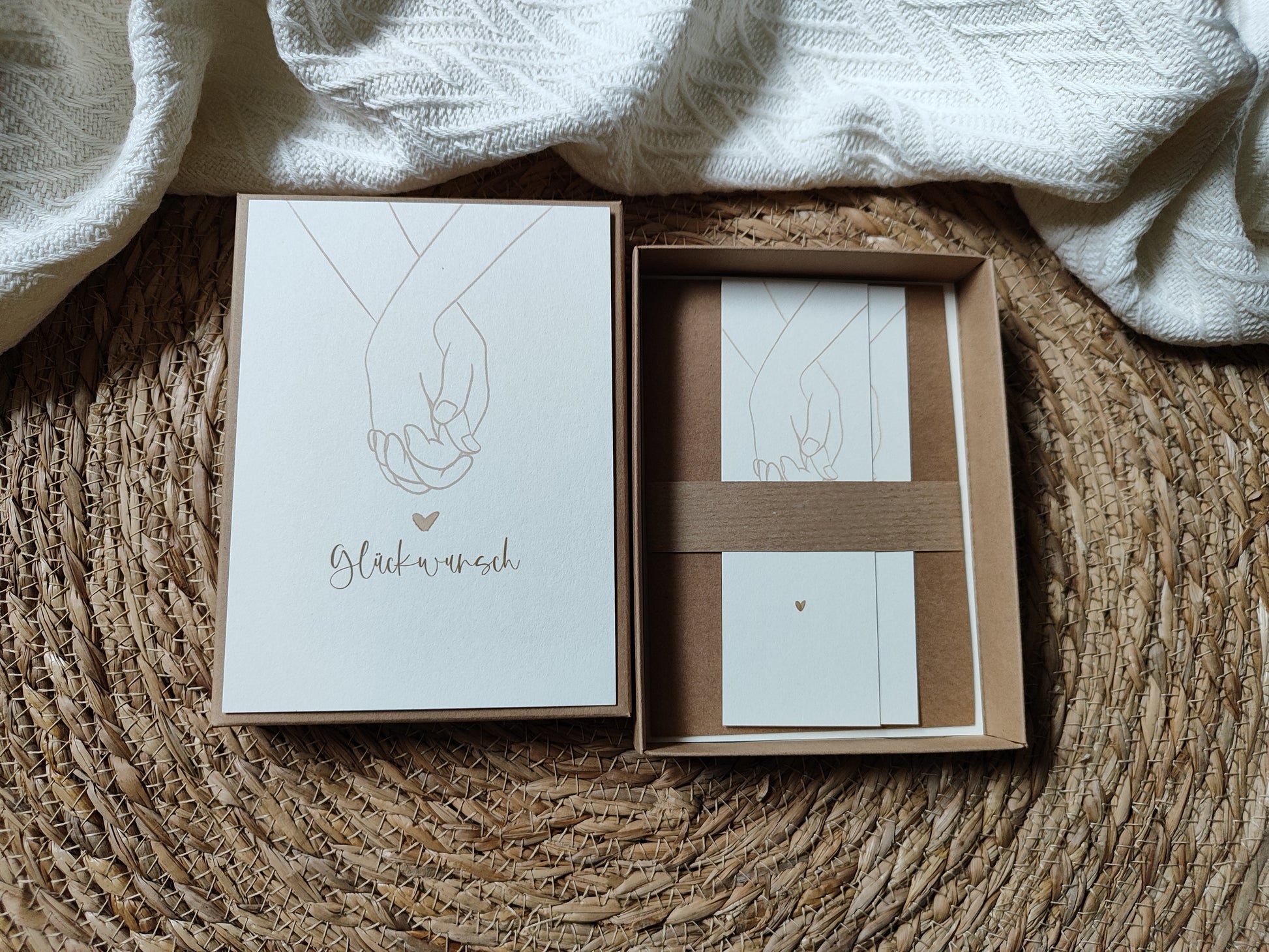 - 1x Kraftkartongeschenkbox + 2x Postkarte (Deckel Außen, Innen)