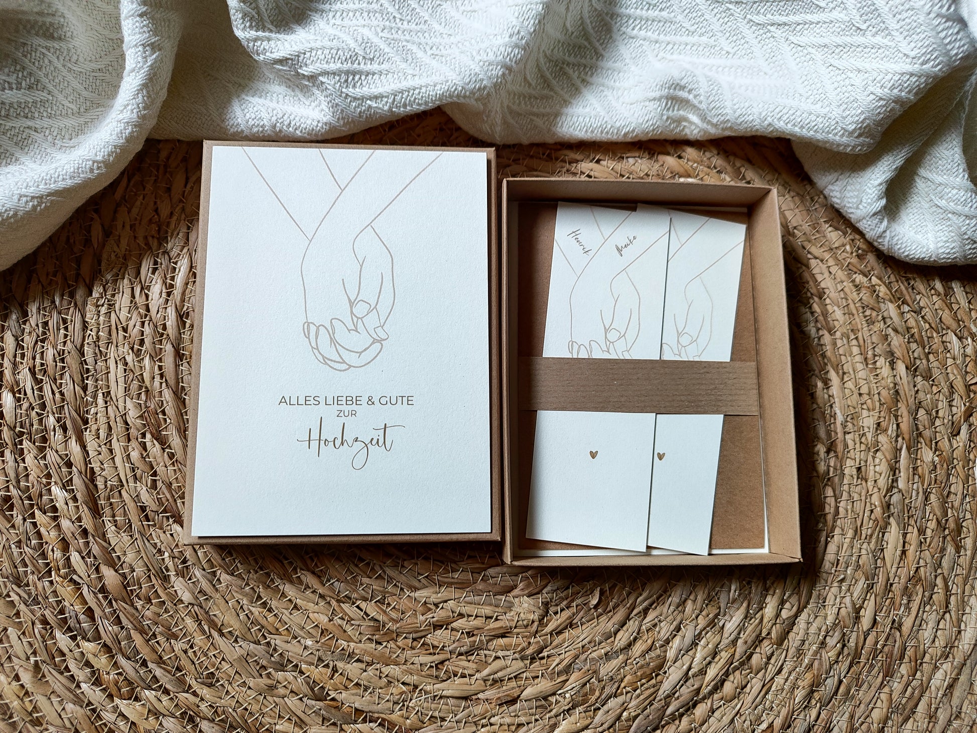 - 1x Kraftkartongeschenkbox + 2x Postkarte (Deckel Außen, Innen)