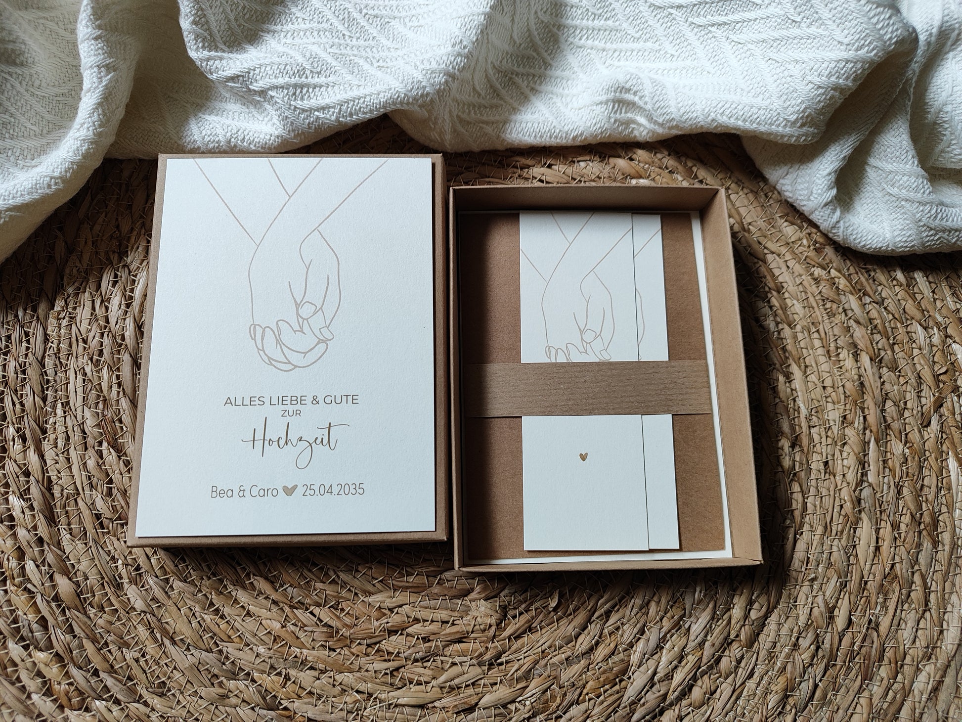Bei der Geschenkbox ist die innenliegende Karte herausnehmbar und bietet Platz auf der Vor- und Rückseite für einen eigenen Text.