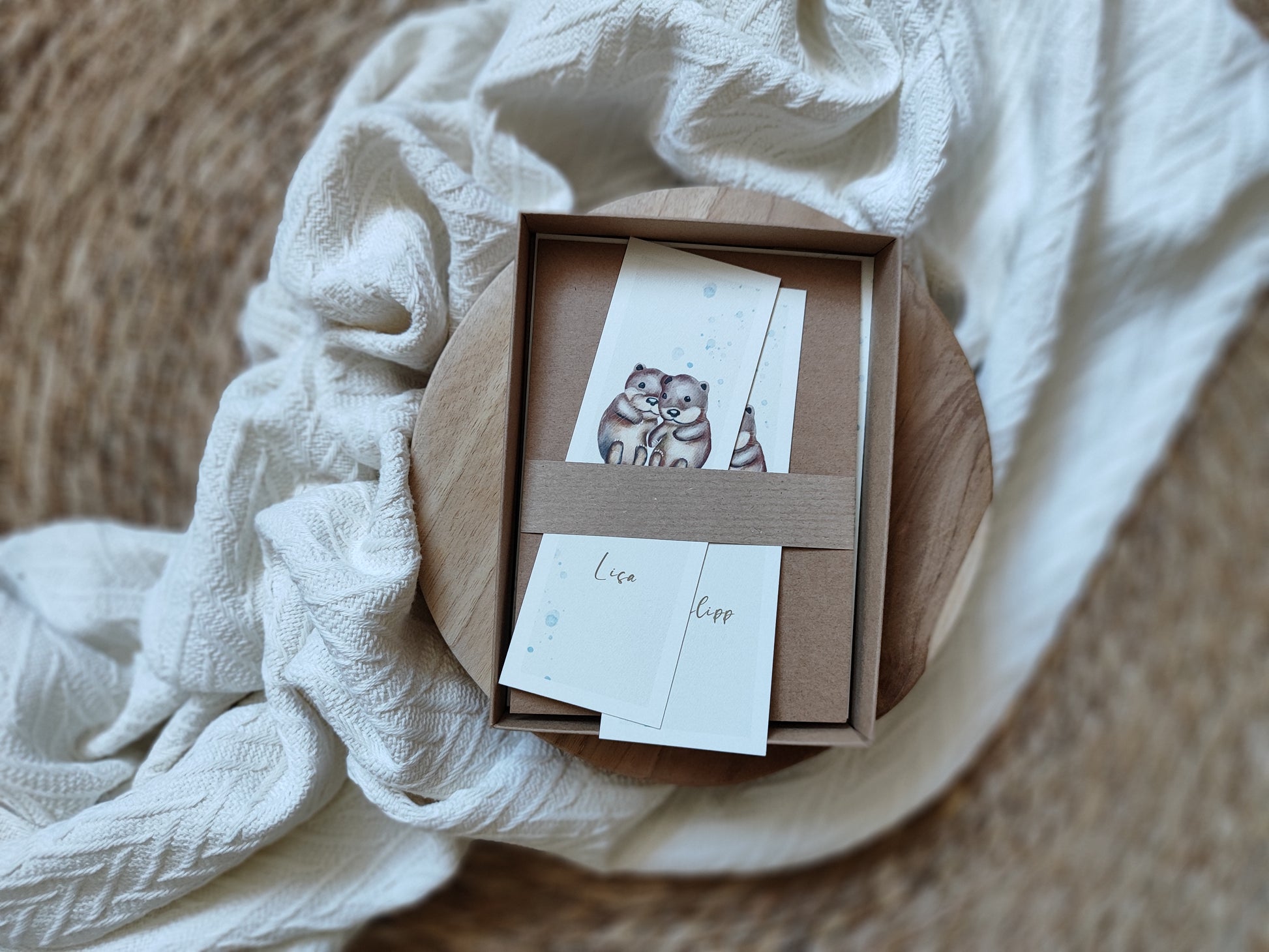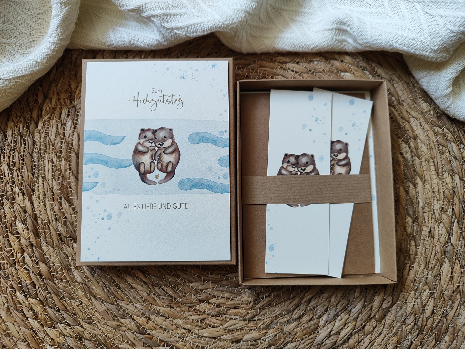 Mit der kleinen Geschenkbox (ca. Postkartengröße) kannst du unsere passenden Lesezeichen zum Hochzeitstag edel verpackt verschenken.