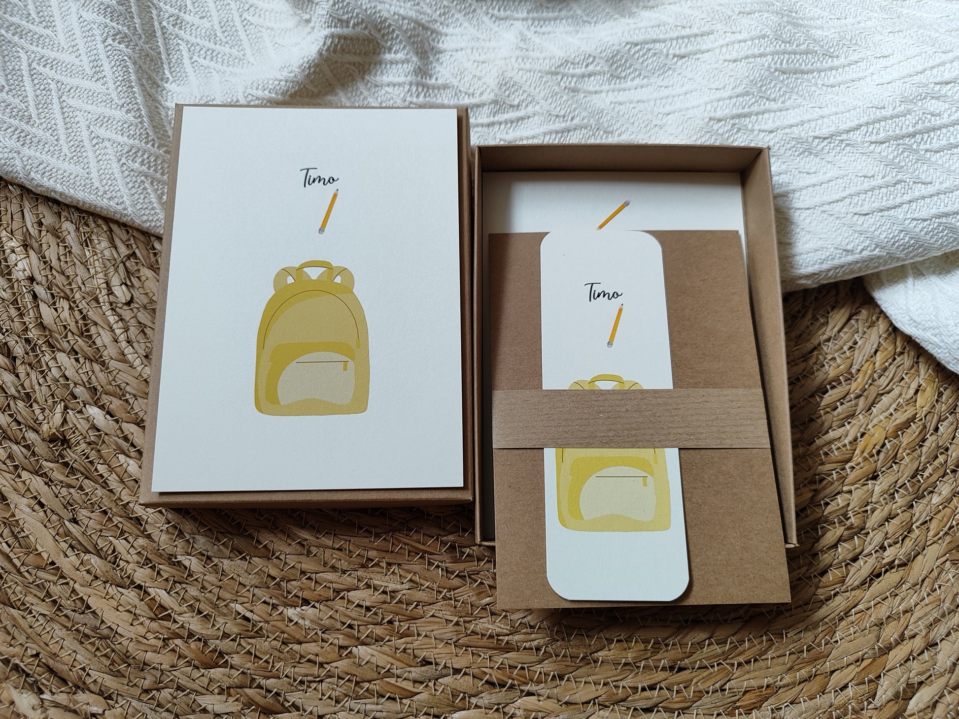 - 1x Kraftkartongeschenkbox + Zusatzkarte mit Banderole