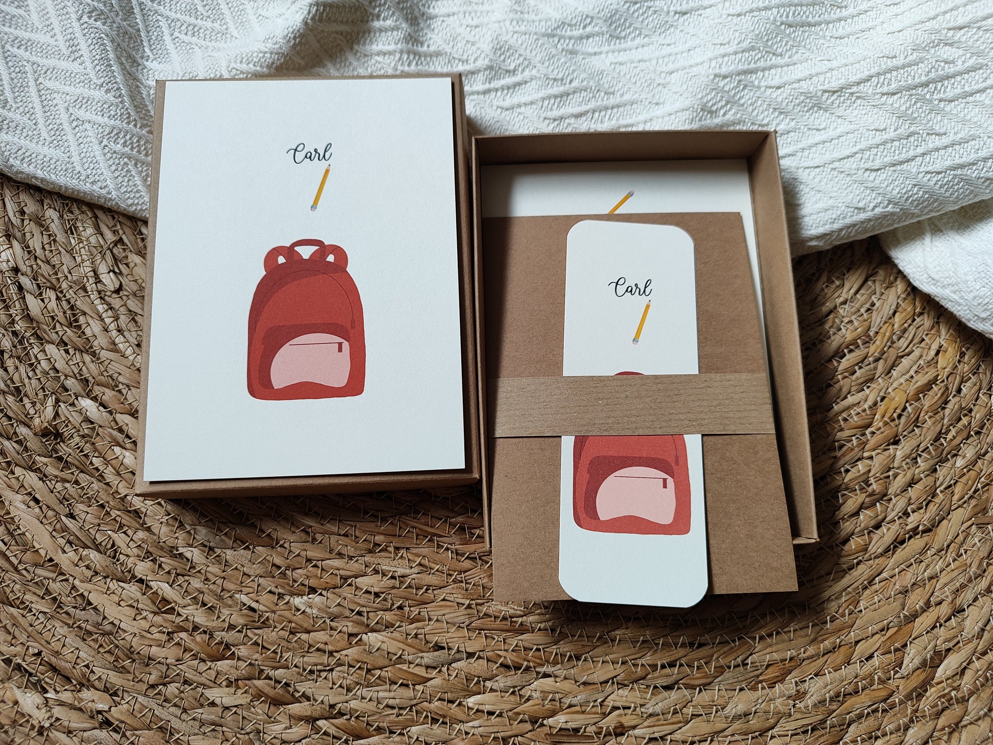 - 1x Kraftkartongeschenkbox + Zusatzkarte mit Banderole